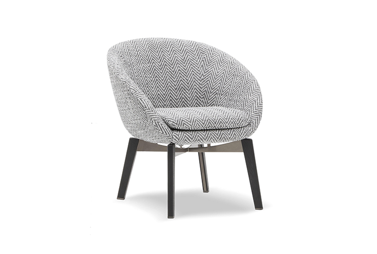 扶手椅、折叠式扶手椅、休息厅和餐椅的旋转版本则以木制辐条制成的底座为特色。