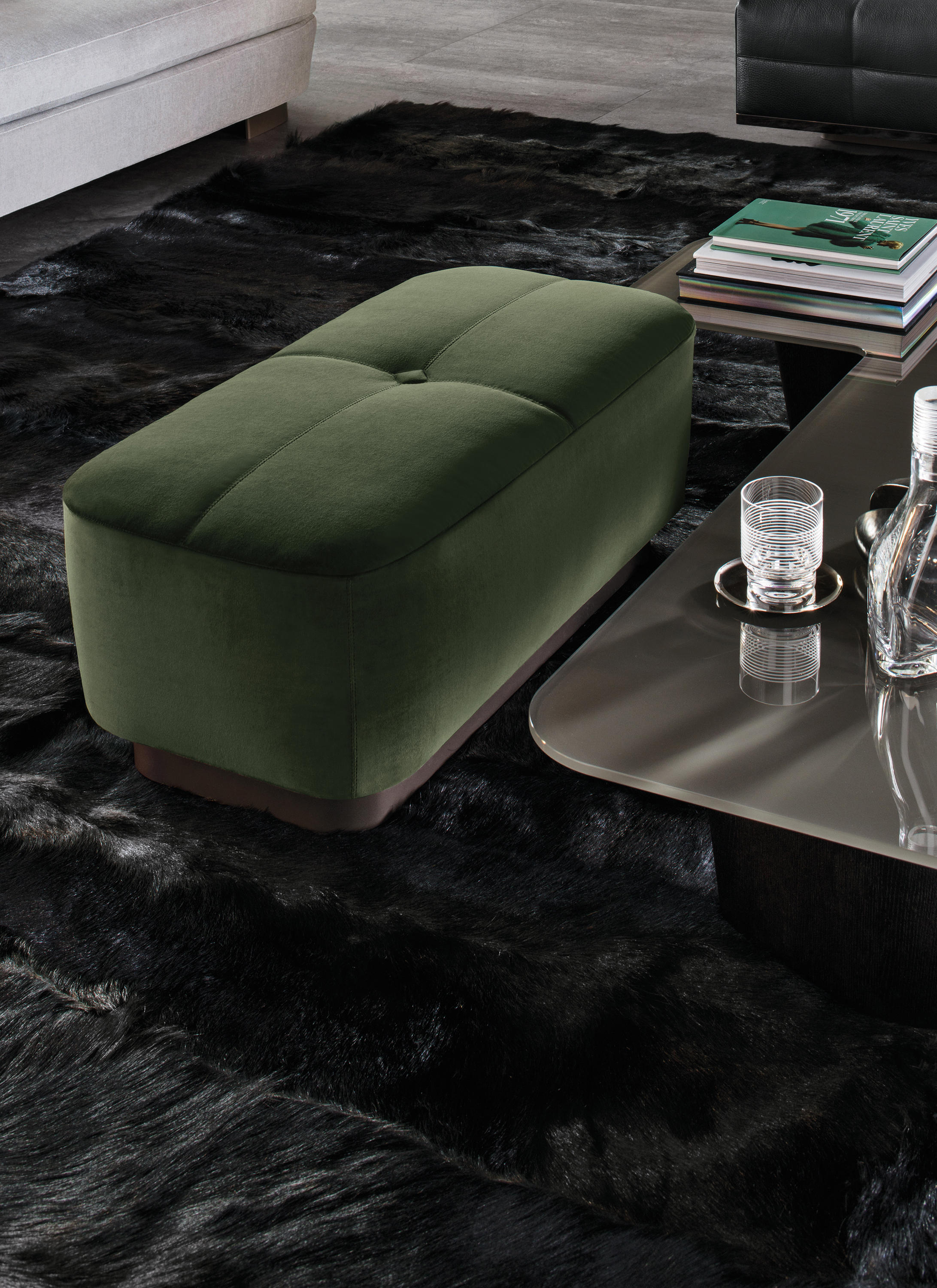 Jacques家族成员众多,包括各种造型和尺寸的脚凳,其特点在于优雅的缝线图样以及方形的纽扣。