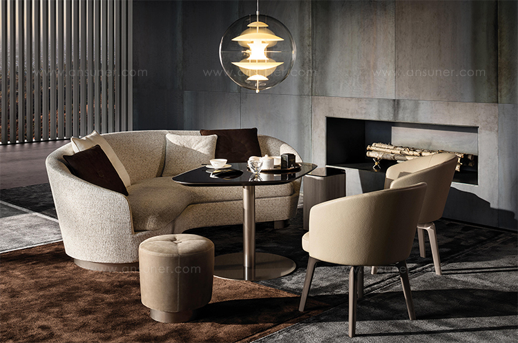 系列中的所有沙发座椅都拥有环抱式的线条,柔软的座椅和靠背带来温馨愉悦的感受。 完美的造型和无可挑剔的覆面体现了源于公司多年经验的高水平技艺,充分展现出坚实的工艺水准。