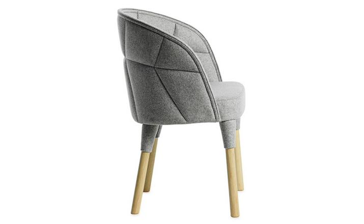 “Emily is our Emma easy chair’s little sister. just like siblings, they are similar but still different. The family likeness can be seen in the needlework: they are both upholstered, but differently pat- terned. The needlework is a function which also creates a powerful idiom. The special technique employed is based on a classical craft, while at the same time occupying the leading edge of technology. Emily is a comfortable chair, equally successful round the dining table and at a conference table.”