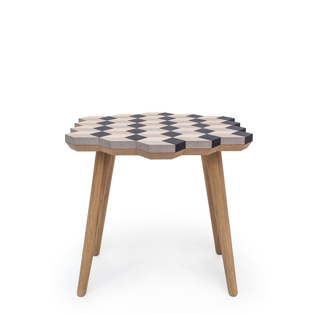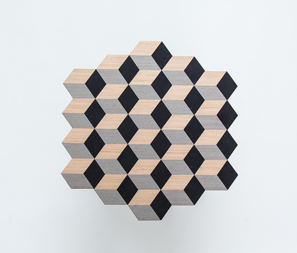 这款独家“Dip Stool”采用三种单色的单板木材制成。 它是通过将几何图形组合在一起而创造出独特的,描绘出迷人的3D幻觉。 这款手工制作的多功能凳子采用柔软的橡木腿设计,带来整体复古感。