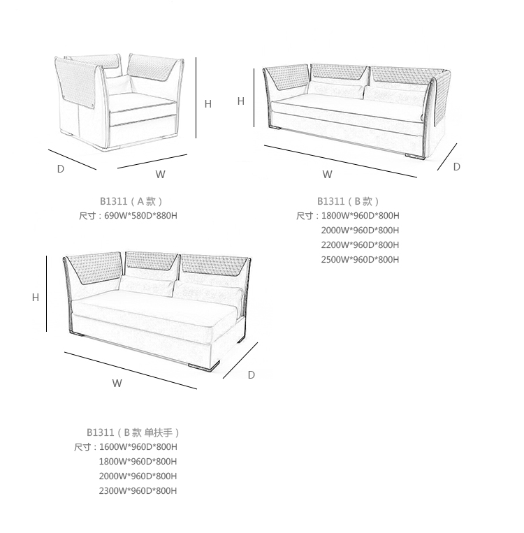 CliviIo 沙发 系列尺寸/示意图