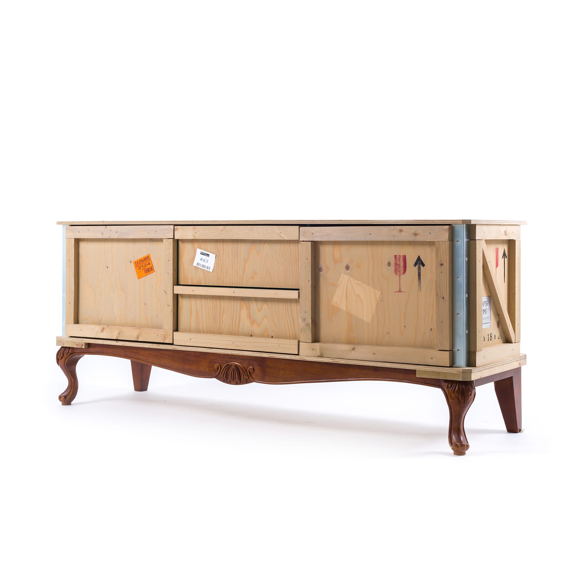 这款现代床头柜由Marcantonio Raimondi Malerba为Seletti设计,它融合了两种不同风格的设计。一个标有各种标签和标志的包装盒配上华丽的路易十四腿。明亮的绿色内部有一个架子和两个存储空间。手工制作的实木,这出口科莫床头柜是令人印象深刻的耐用性,因为它是在其独特的设计。它可以单独使用,在卧室或与来自ExportComo系列的其他家具一起创建一个焦点。意大利制造。