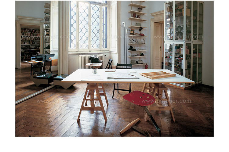 "Achille Castiglioni说:“你需要的是一个永恒不变的设计而不是一种风格。”桌子的设计灵感和取名来自Leonardo Da Vinci(达·芬奇)。Leonardo是一张桌子,一张适合一对儿亲密情侣坐在两面的桌子,也许彼此吸引太过强烈,连一张桌子的距离都觉得遥远。于是,愣是把桌子给挤变形了,就为了近一点,更近一点。Achille Castiglioni 出生于1918年的米兰。学建筑出身,同样跨界建筑和产品两大设计领域,所以从他的很多家居产品设计上都能看到建筑观念的影子。曾经服务的ALESSI,FLOS, MOROSO等家居制造商现在已经成为世界最为顶级的生产制造商,Achille Castiglioni 是陪伴着这些品牌成长起来的,现如今Achille Castiglioni 的设计还在生产,已经生产销售了几十年,成为经典。Castiglioni于2002年12月逝世于米兰。