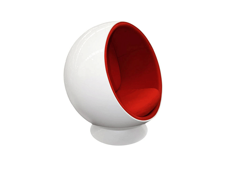 “球椅”是介乎于家具和建筑之间的一种产品,它好像“房间里的房间”,椅子很矮,坐进去,就仿佛陷入另外的一个世界,能迅速拥有安静舒适的环境,外界的噪音也被抵挡住。可以躲在里面冥想、放松身心,或者打私人电话。设计师阿尼奥就在自己那把原版的“球椅”内壁上装了一个红色的电话机,“球椅”提供一个相对私密的空间。椅子底部有轴,能360度旋转,坐在里面的人向外看,眼前的风景会随着转动而改变。这样,即使蜷缩在椅子里,也不会有与外界完全隔离的孤独感。就是这样一个狭小的空间,却带给了人们无比的安全感与舒适感,也就是这把椅子的诞生,掀开了“PODLIFE” 的篇章。"