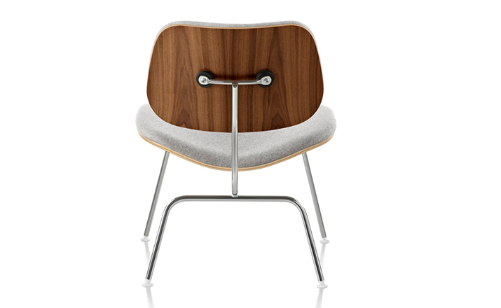 A refreshing variant of the LCM (1946), the Upholstered LCM sports Kvadrat Divina fabric on its front side. This iconic chair began as an experiment in the Eameses'apartment,where they were molding plywood in what they called the“Kazam! Machine.”The machine pressed thin sheets of wood veneer against a heated membrane that was inflated by a bicycle pump. Humble beginnings for what would become one of the world's most widely recognized and highly coveted chairs.Low-slung,with an expertly crafted molded seat and back(no bike pumps are used today),this chair cradles you in a comfortable position.Its form relates directly to the human body and holds no secrets as to how it succeeds technically.The slender rod base provides superior strength,while rubber shock mounts buffer against jarring movement.