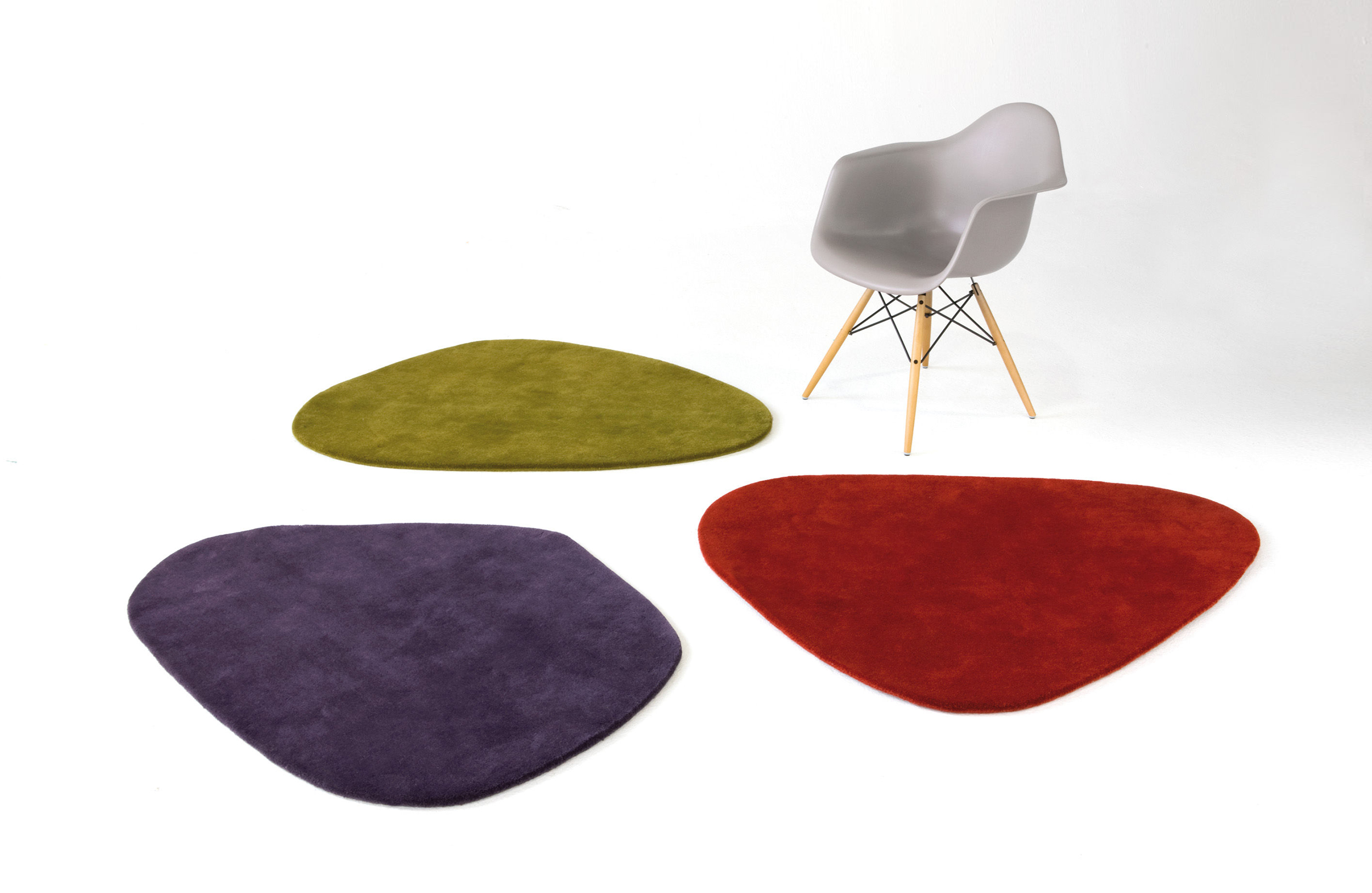 灵感来自亚历山大·考尔德的著名手机,这些不规则的羊毛地毯被认为是生活在一起,形成有吸引力的组合。