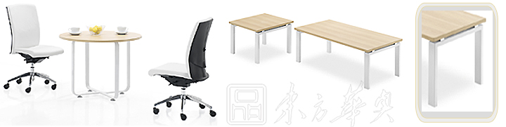 ※  上图为“方通脚”款式会议桌,脚架的颜色有银灰色和白色选择,台面板有多重选择,满足领导临时接洽和会议的需要!