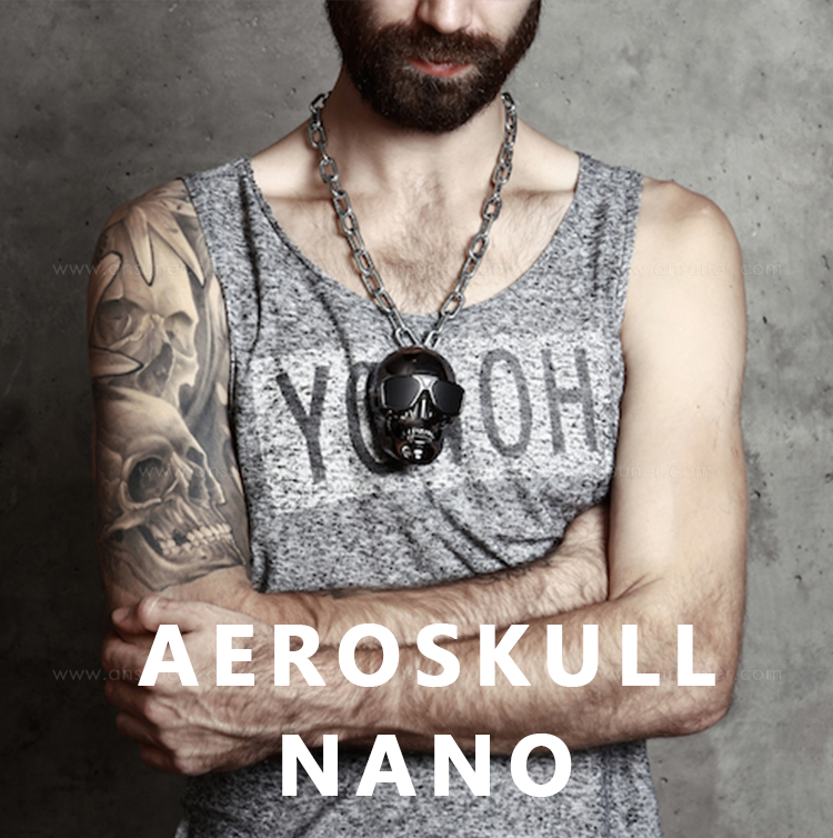 AeroSkull Nano体积小巧,可置于手中(7厘米高),通过蓝牙4.0或3.5毫米Line-in多功能插头可轻松连接到任何智能手机、计算机或CD播放器,是极为便于携带的音箱,外观持久耐用,金属随身夹让爱乐人可以随时与歌同行。