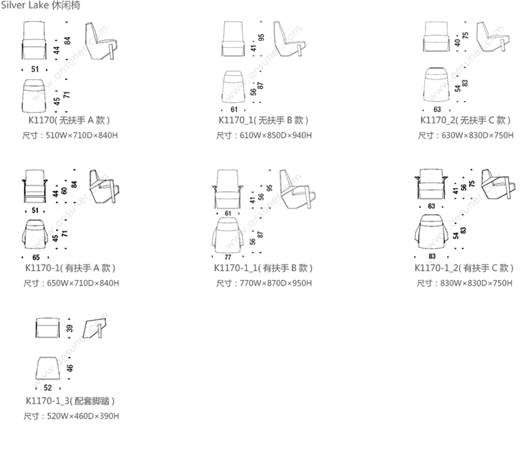 Silver Lake 休闲椅 系列尺寸/示意图