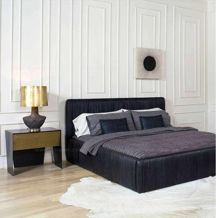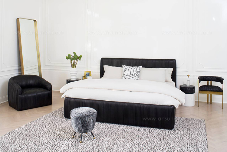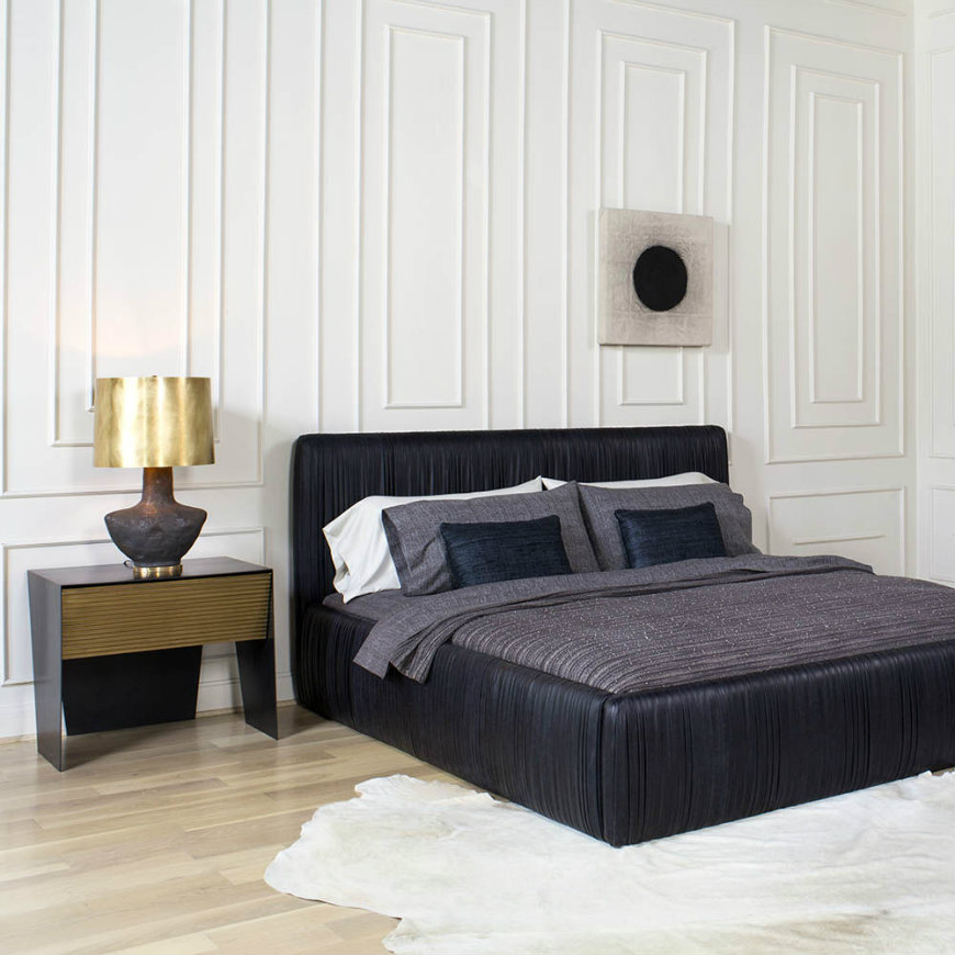 柔软的曲线和低轮廓的这一标志性的床突出我们的标志性应用黄油褶皮革。采用硬木床头板、踏板和扶手,易于拆卸,便于安装。我们的可调节床垫平台有三个高度设置,以适应各种床垫类型。 Souffle Bed从头到尾都由一位敬业的工匠装饰,是奢华、高品质和注重细节的典范。