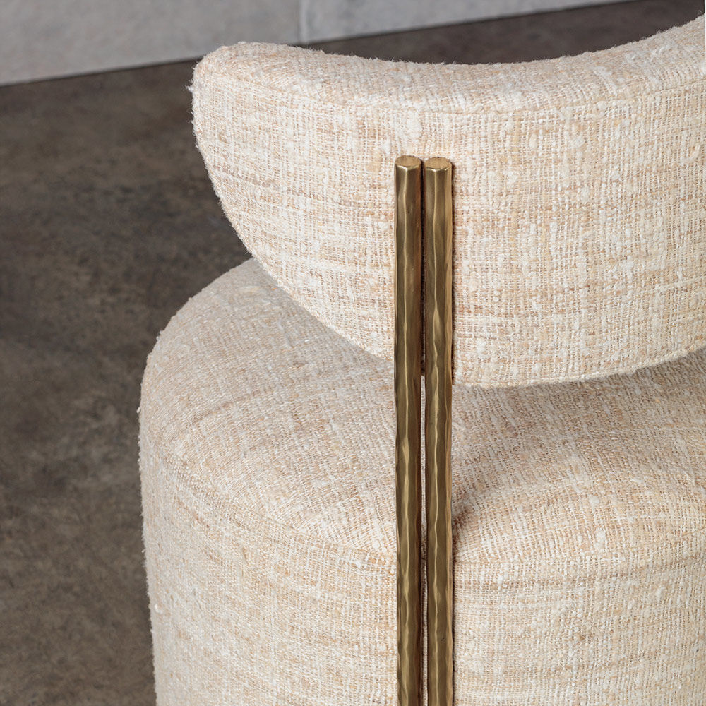 Melange Vanity Stool身材娇小但形式大胆,是细致入微的现代设计的典范。 这款凳子采用实心铸造黄铜腿和手工制作的手工制作而成,并采用轻微抛光的抛光黄铜色。 软垫座椅和靠背有各种精选面料和皮革可供选择。