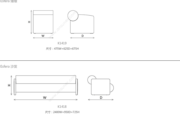 Esfera 矮墩 系列尺寸/示意图
