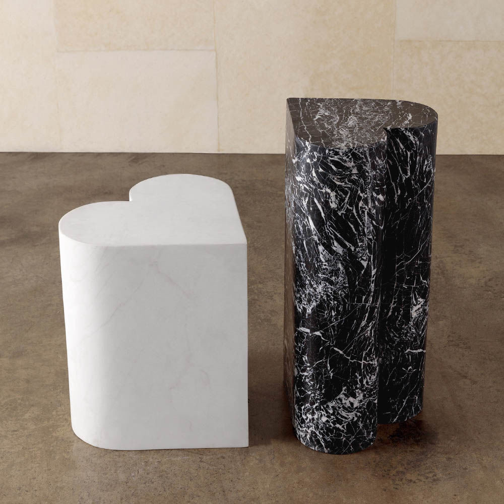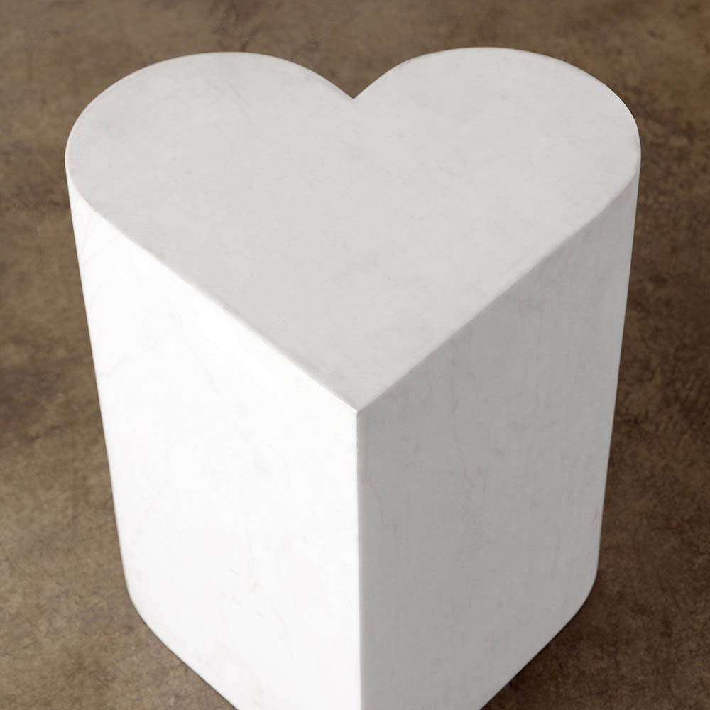 这款实心大理石凳子的诱人心形设计以凯利的探索和独特的新主题为特色。 男性和女性艺术,形式和雕塑的完美结合,这一不寻常的作品创造了一个别致的陈述。
