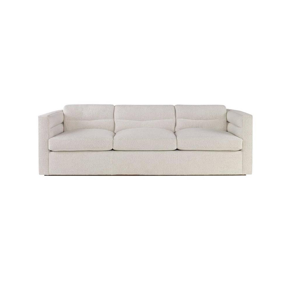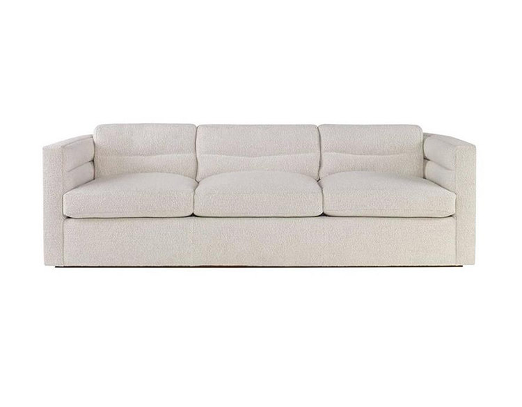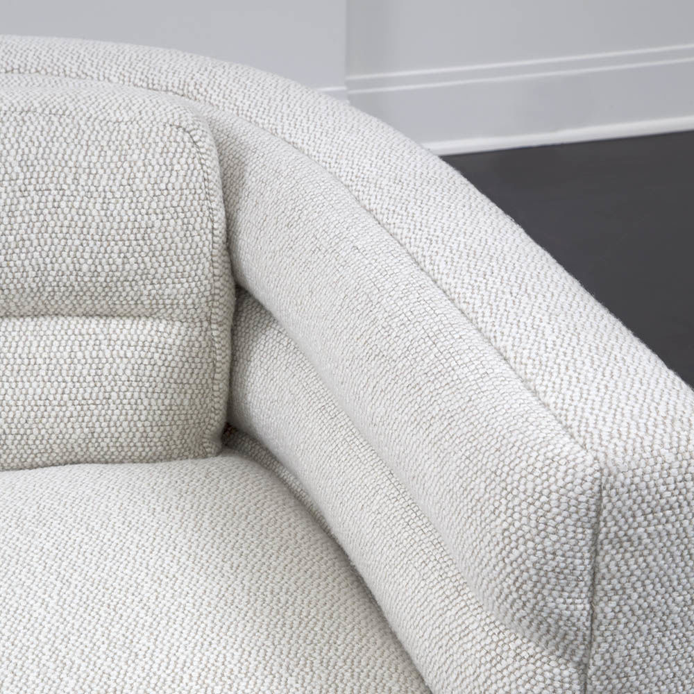 这款经典的扶手沙发采用柔软弧形靠背设计,整个过程中都有标志性的定制通道细节。 三个松散的靠垫和三个座垫使用10/90混合的鸭绒和羽毛,以延长寿命和极致舒适。 腿部采用低嵌入式木结构,使轮廓能够漂浮在地面上方。 硬木框架采用双向榫钉,配有8向手动弹簧,经久耐用,性能卓越。