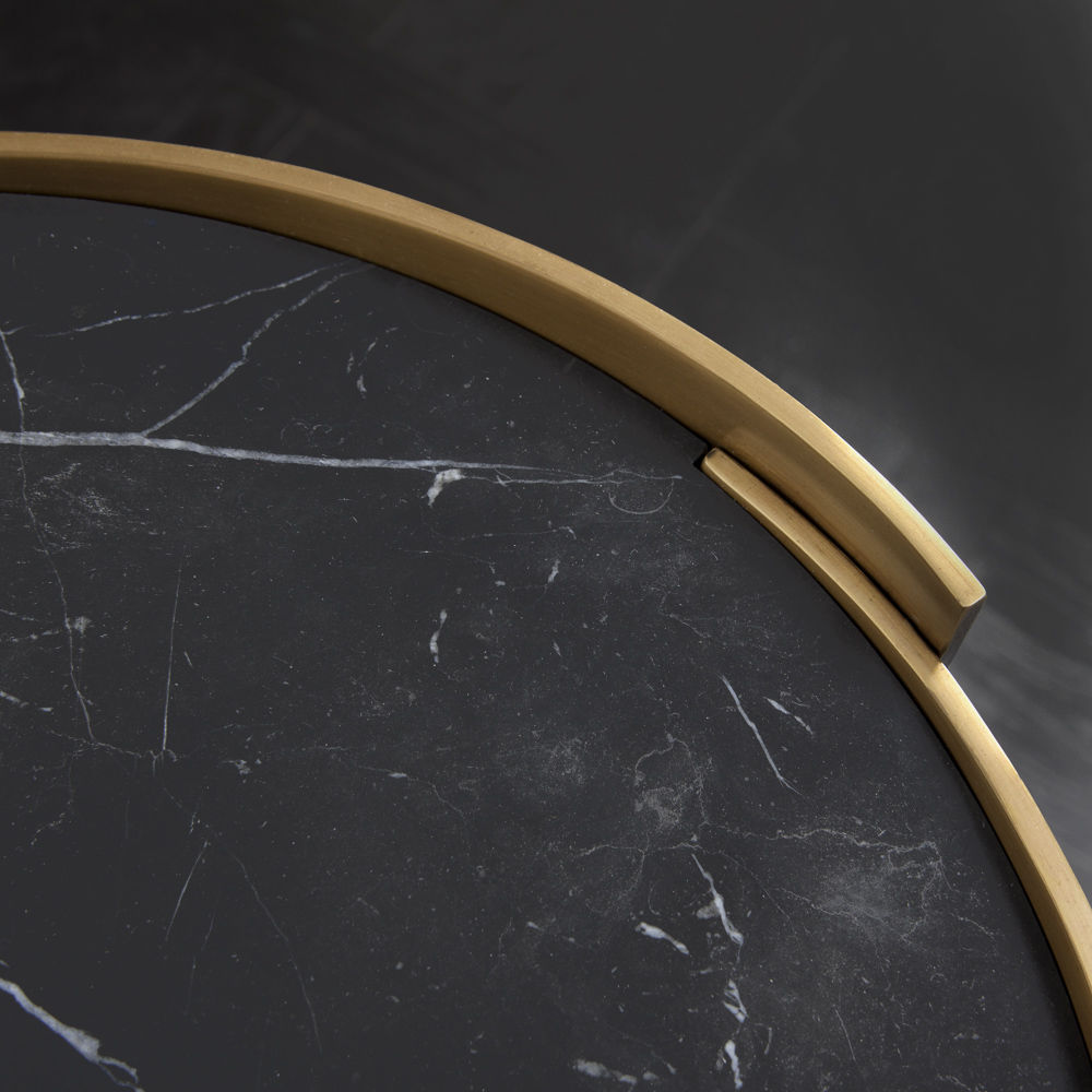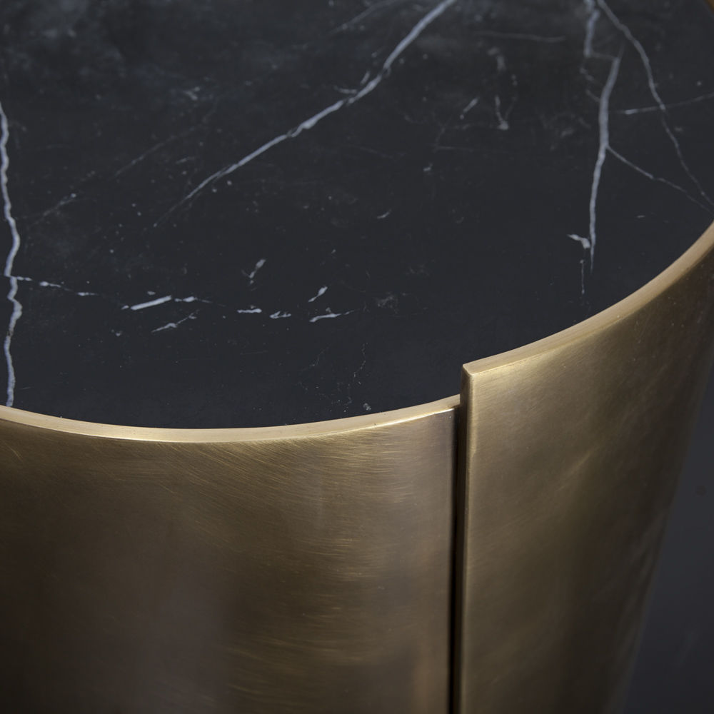 借鉴凯利对雕塑和原石的热爱,这款优雅精致的圆柱形实心鼓桌由一个1/4英寸黄铜板组成,表面饰有抛光青铜色,并在黑色或白色Marquina,磨光和密封的大理石顶部周围形成 Venatino石。 该设计具有微妙的重叠形状,为悄然标志性的轮廓增添了趣味和特色。