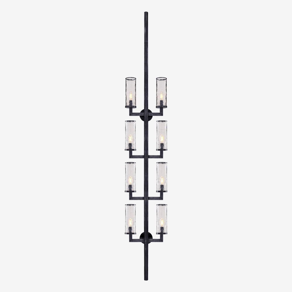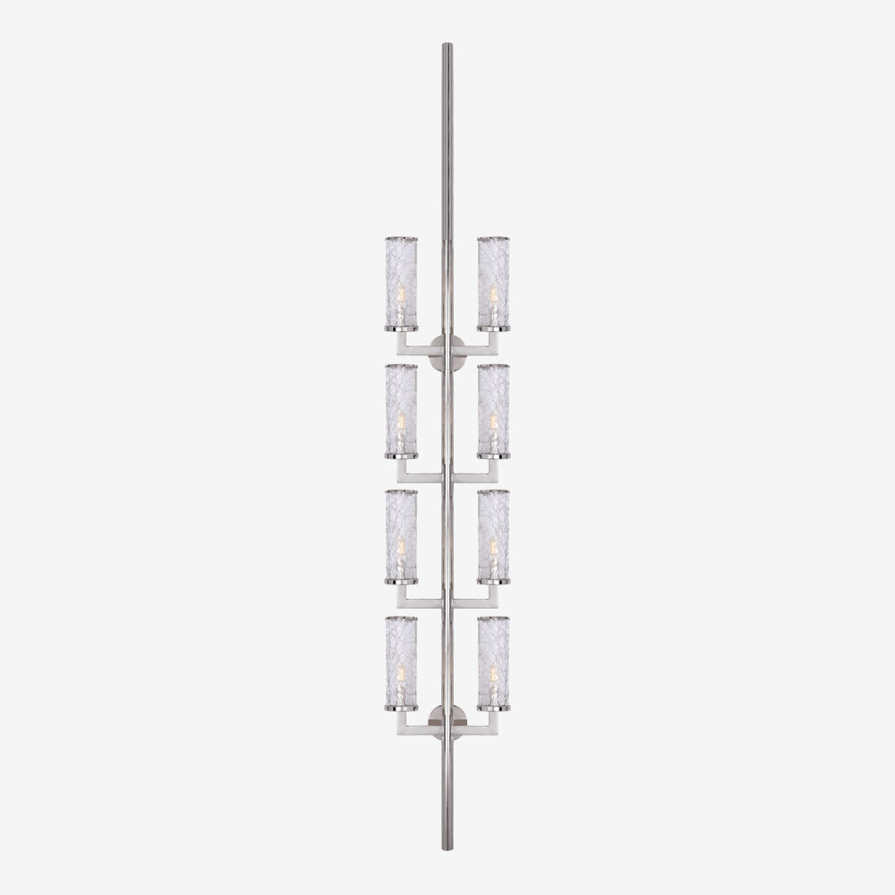Liaison壁灯以其干净的建筑金属细节和破碎玻璃的动态美感,模糊了现代和经典的线条。 该壁灯适用于室内和室外空间,可提供古董抛光黄铜,青铜和抛光镍。