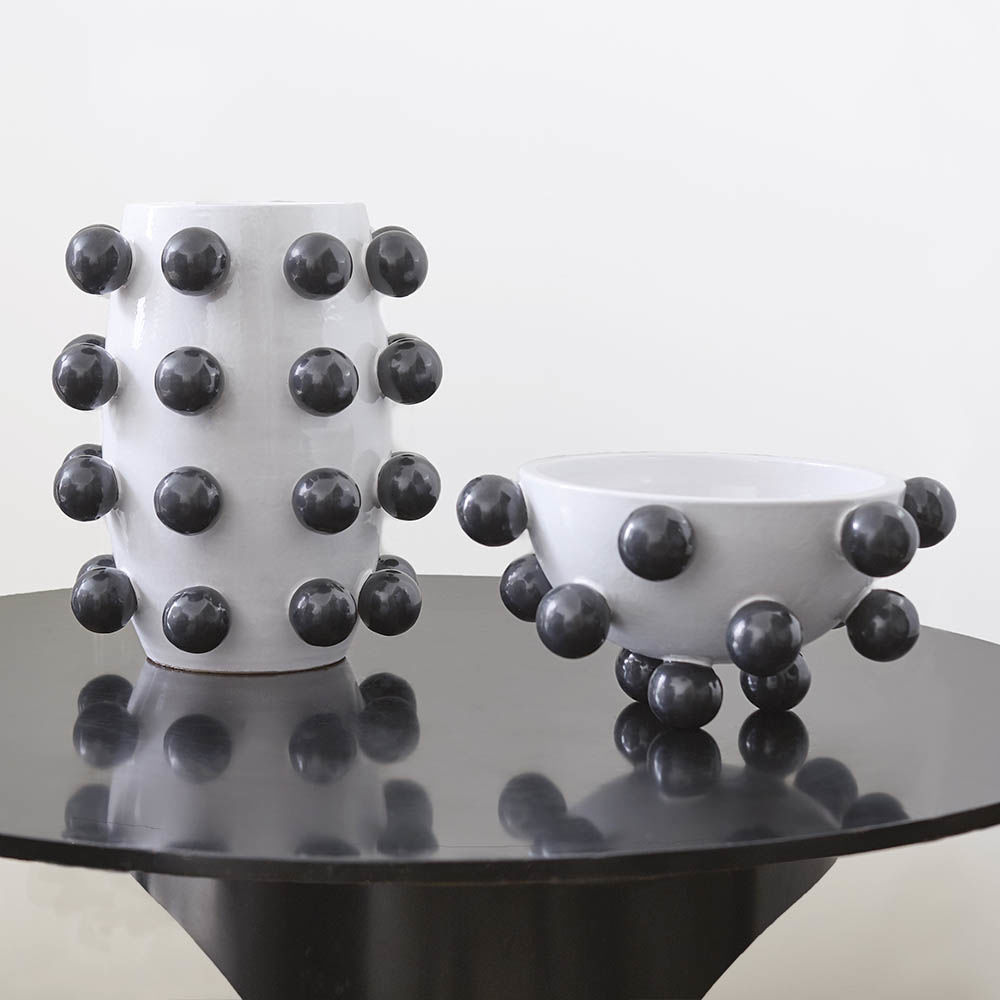 灵感来自凯利的爱的对比,这款充满活力的陶瓷花瓶与装饰球体一起被用作令人兴奋的细节,与流行系列中的其他作品相得益彰。 作为鲜花独立花瓶的完美之选,它是首选作品,使房子里的任何房间都活跃起来。