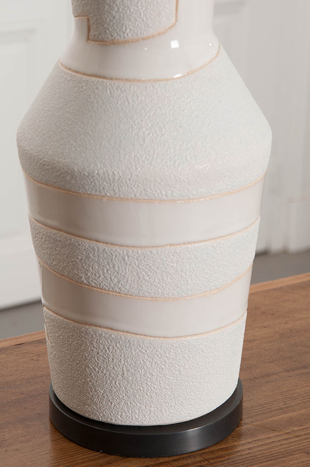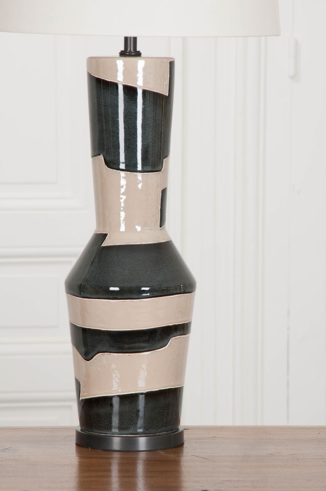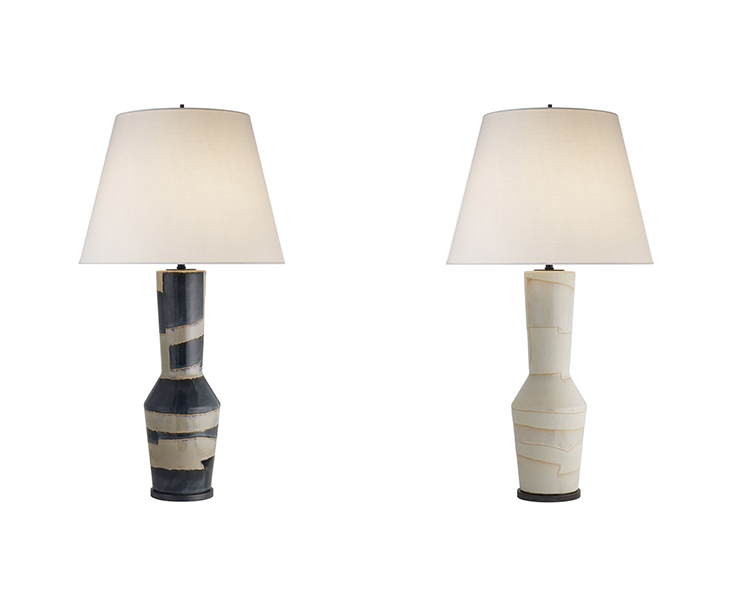 Alta系列由雕塑作品组成,是优雅和纯净的任何内饰。 在雕刻的天然材料中重新构想的几何轮廓变得优雅的雕像般。 有沙色和黑色条纹可供选择,多孔白色和象牙色有亚麻灯罩。