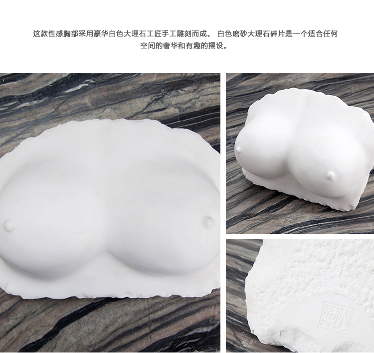 这款性感胸部采用豪华白色大理石工匠手工雕刻而成。 白色磨砂大理石碎片是一个适合任何空间的奢华和有趣的摆设。