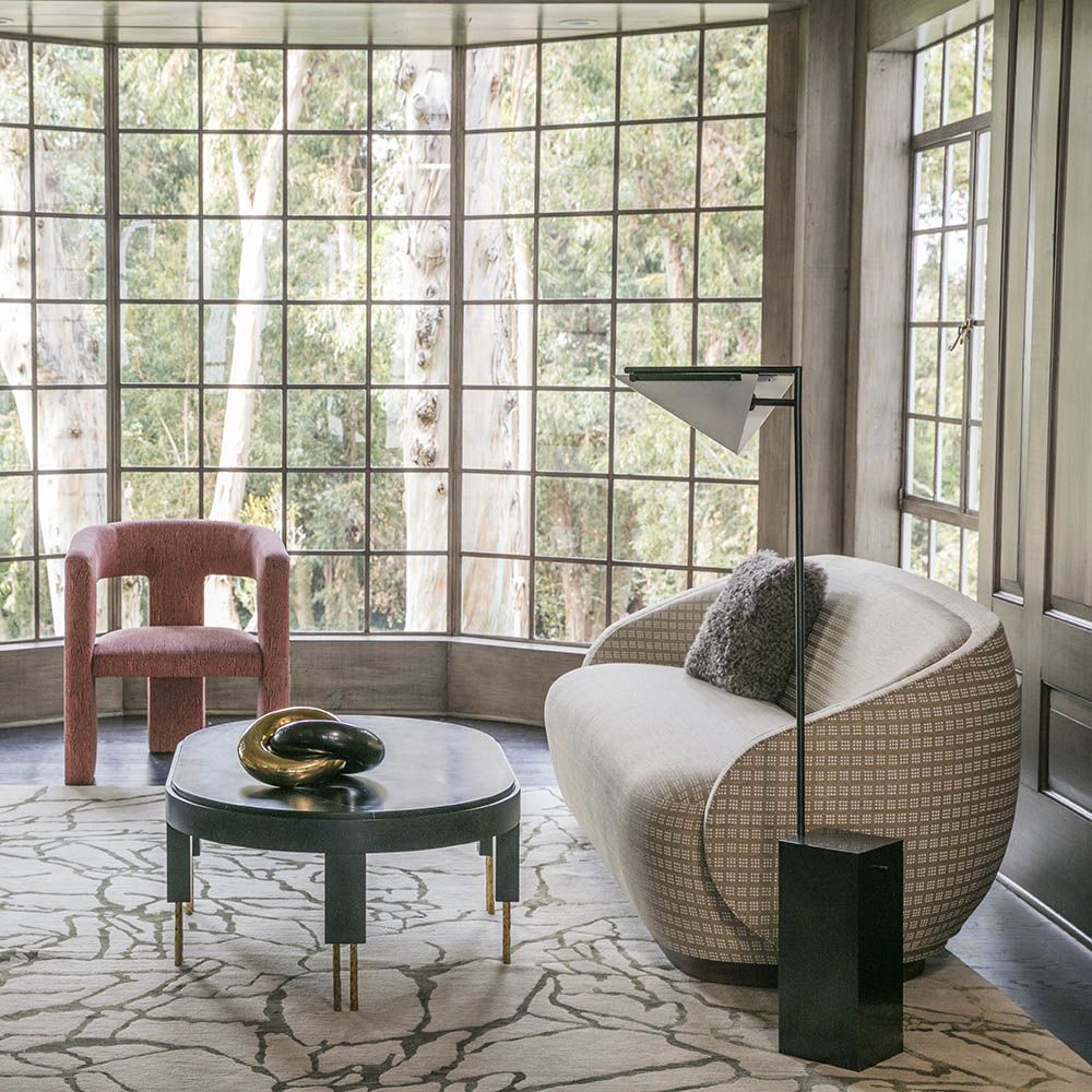 从石头和大理石的天然纹理中汲取灵感,当光线照射到丝线上时,Tracery地毯有机线条的变化和闪烁。 背景是西藏羊毛,呈暖灰色,图案为柔软的橄榄绿色丝绸。