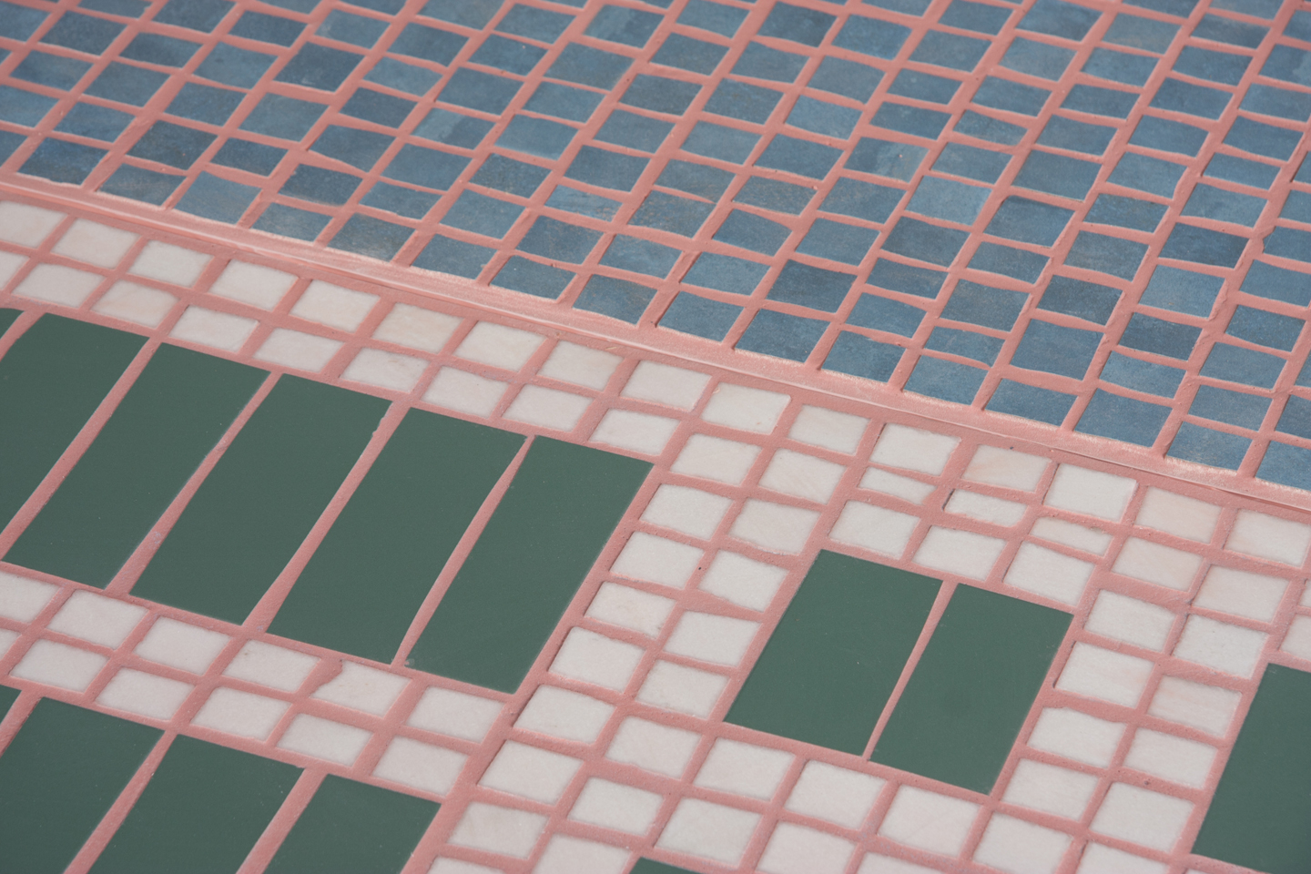 一块马赛克地毯,庆祝米兰阿伦加里奥宫殿80周年及其由建筑师Portaluppi、Muzio、Magistretti和Griffini签署的项目。 在建筑立面上再现不对称几何形状的相同大理石砖被投射在非织造织物上。