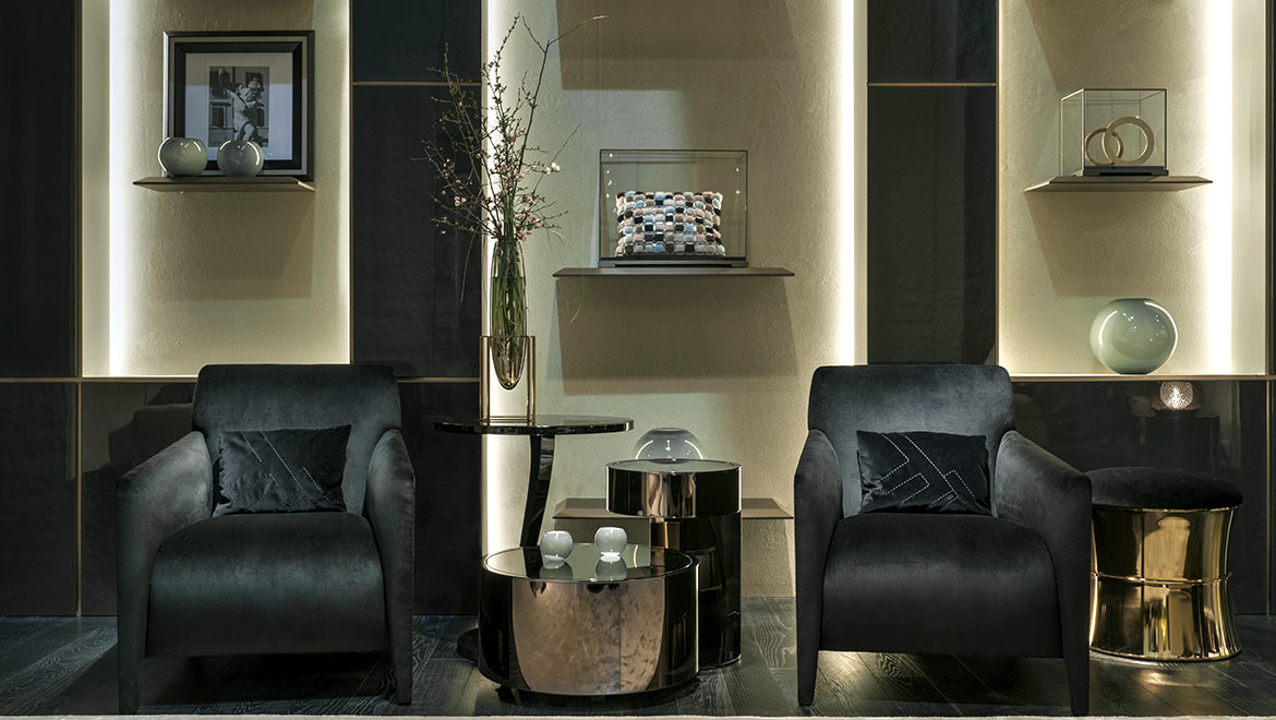Shadow, polished brass finishing