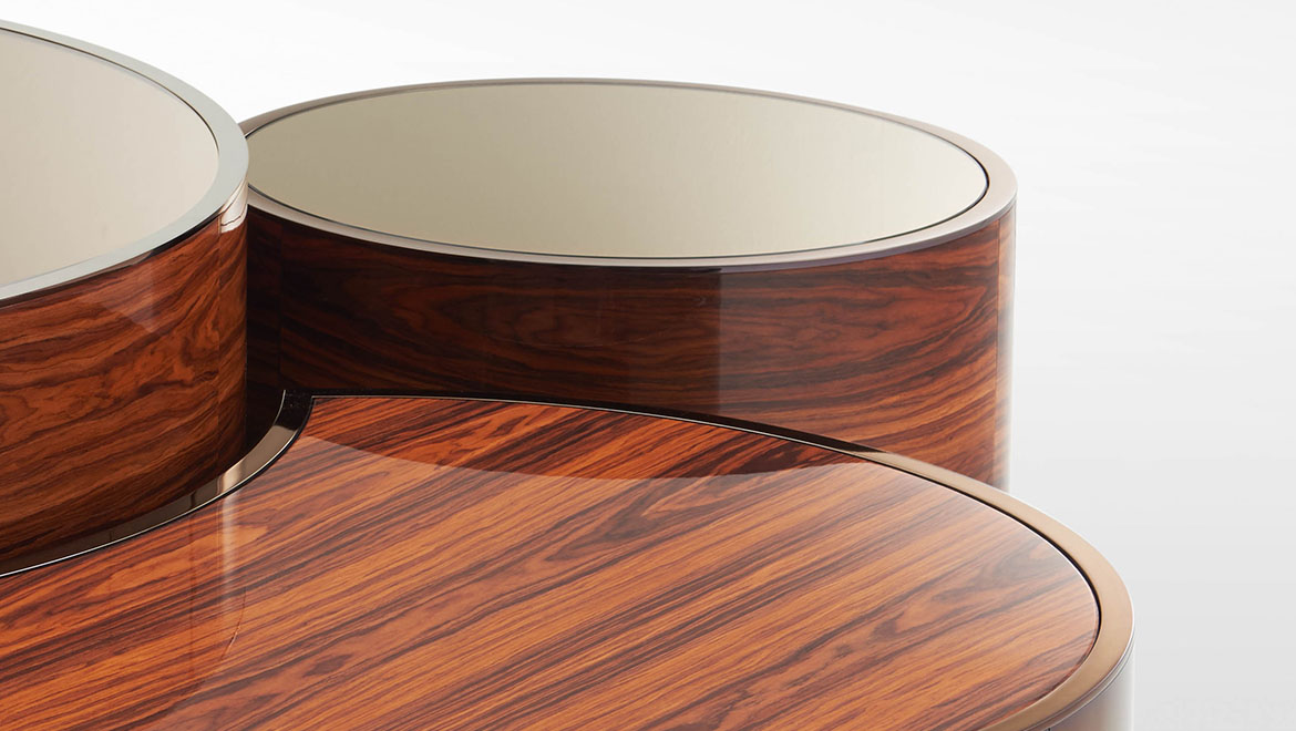 TOP Wood covered with extra clear mirror, smoke grey or bronze coordinated