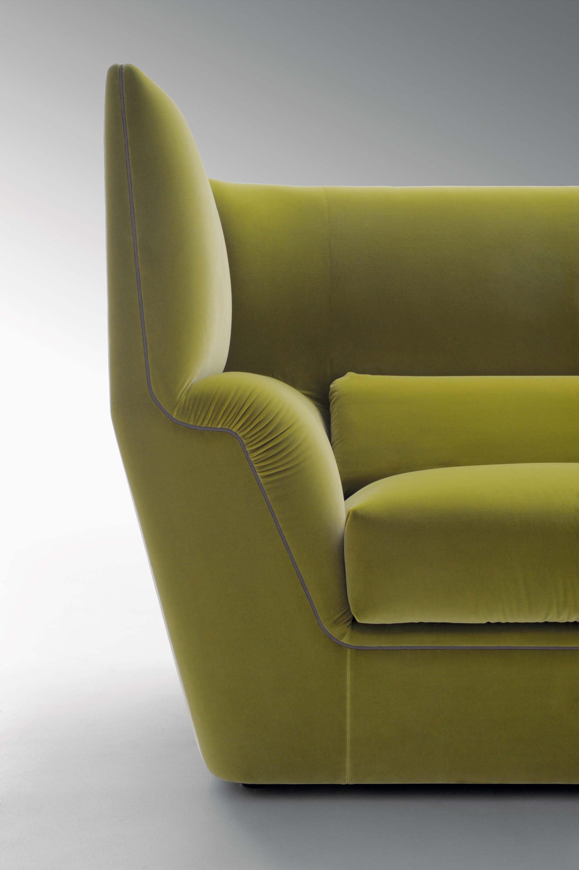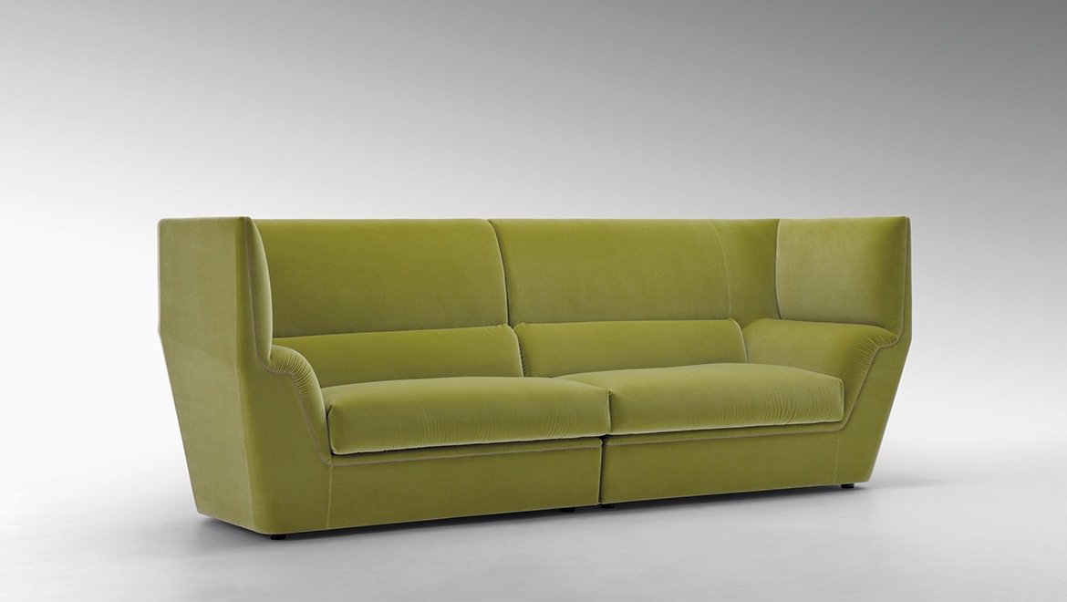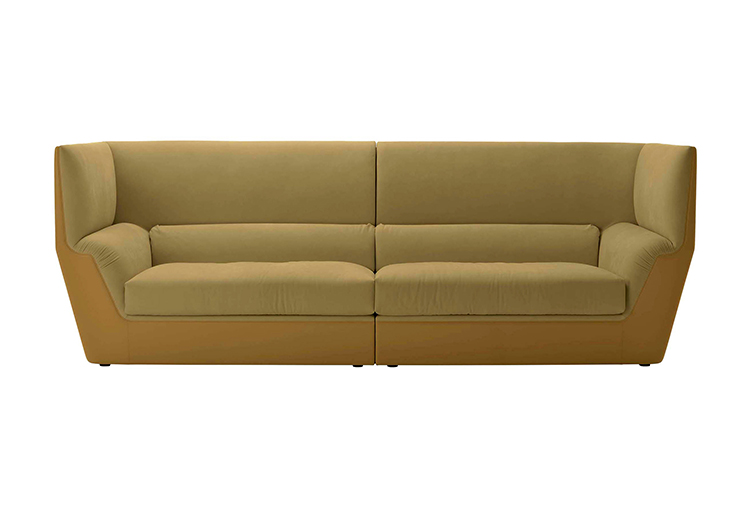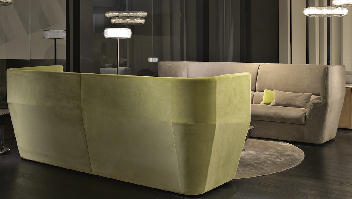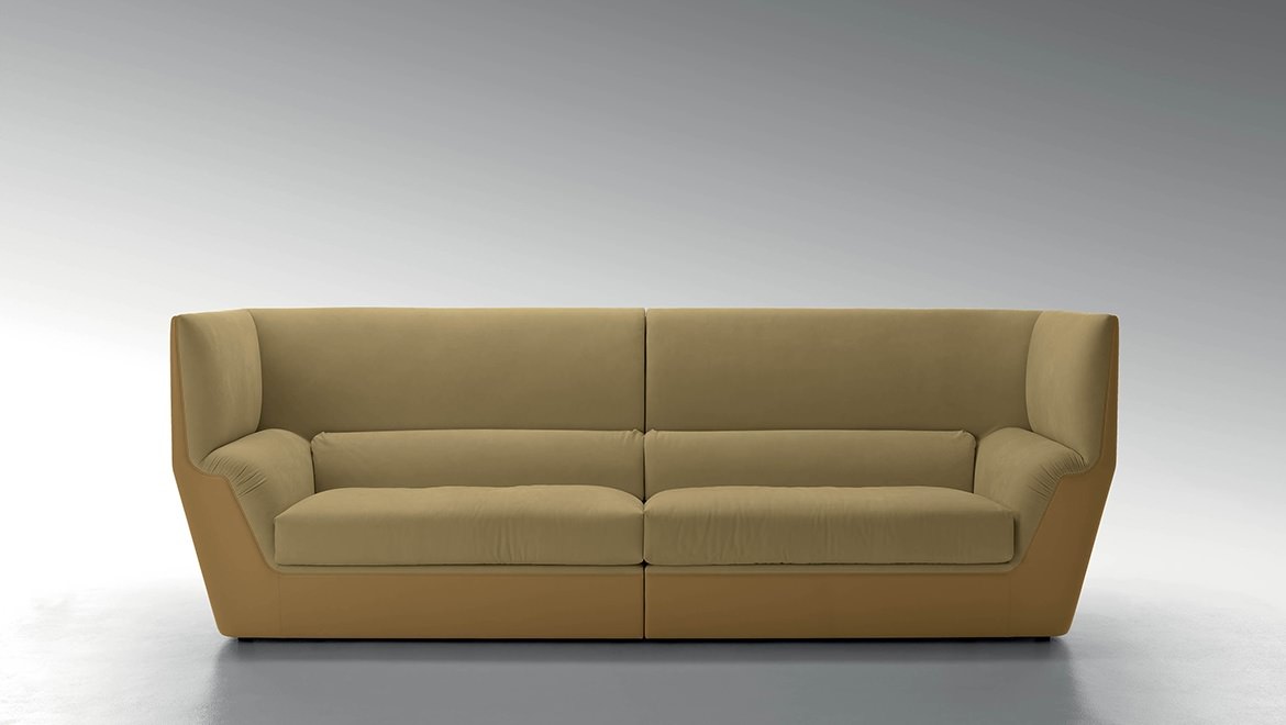 Cocoon stems from the will to create a very dramatic furniture collection, meant to become the protagonist of the ambience and at once an island of visual and acoustic intimacy. The sofa takes the characteristics of a true architectural space and grants remarkable privacy. The elements in the Cocoon family offer the opportunity to live a comfortable and cosy experience thanks to the softness and generous proportions.