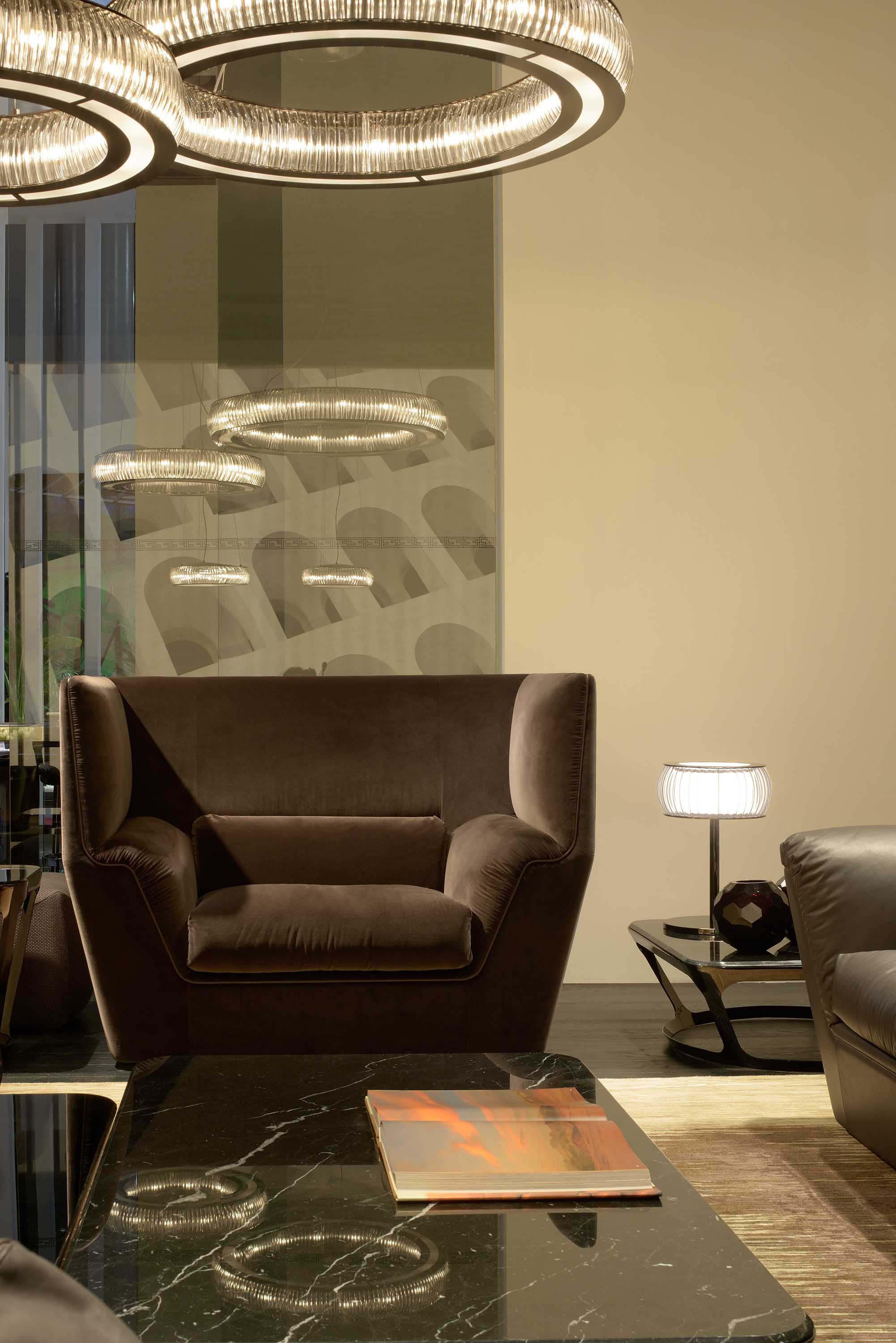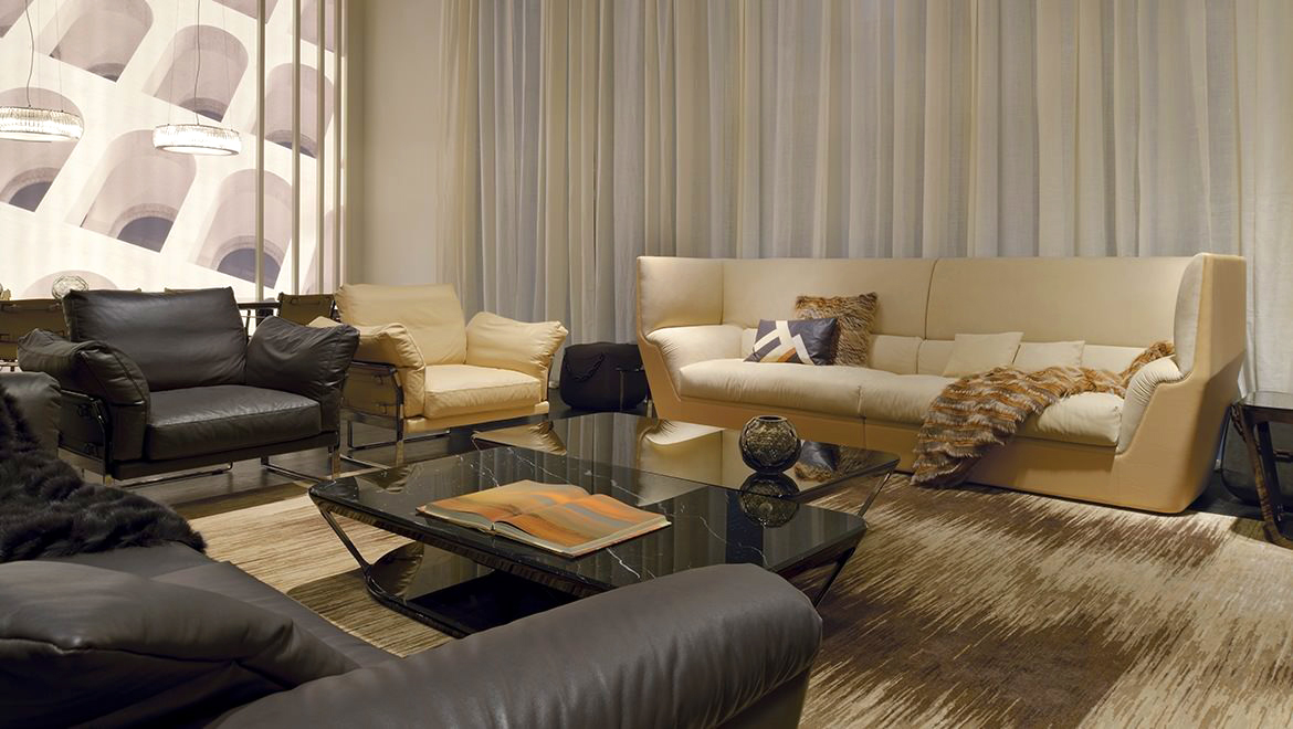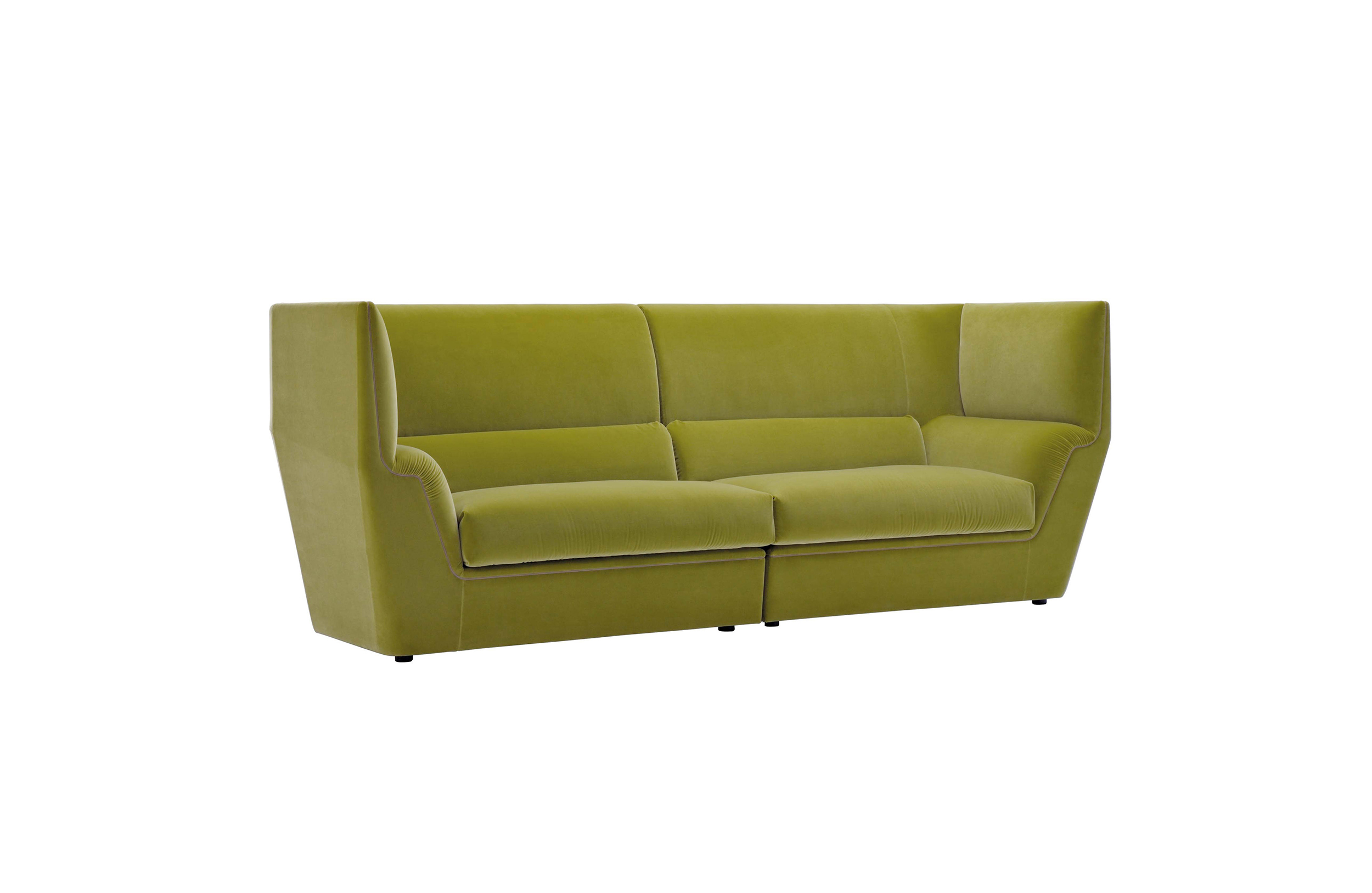 Cocoon stems from the will to create a very dramatic furniture collection, meant to become the protagonist of the ambience and at once an island of visual and acoustic intimacy. The sofa takes the characteristics of a true architectural space and grants remarkable privacy. The elements in the Cocoon family offer the opportunity to live a comfortable and cosy experience thanks to the softness and generous proportions.