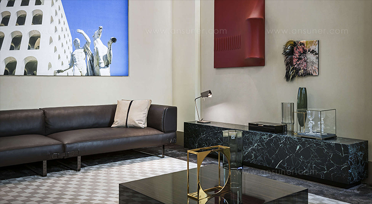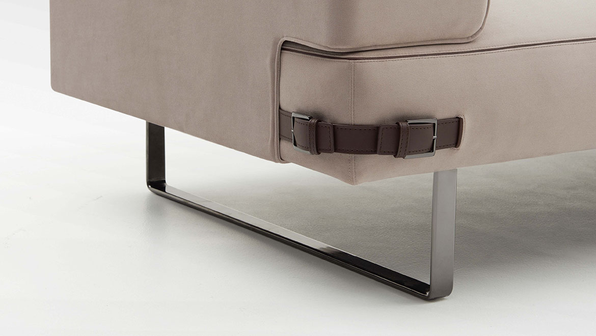 Soho Lite沙发是用钢的线性支撑元件重新塑造的。由于皮革装饰的中性色调,线性结构呈现出新的特点,而在技术面料版本中,精细材质的性能保证了柔软性和舒适性。buckles对芬迪的美学代码表示敬意,成为吸引人的细节和功能的连接器。