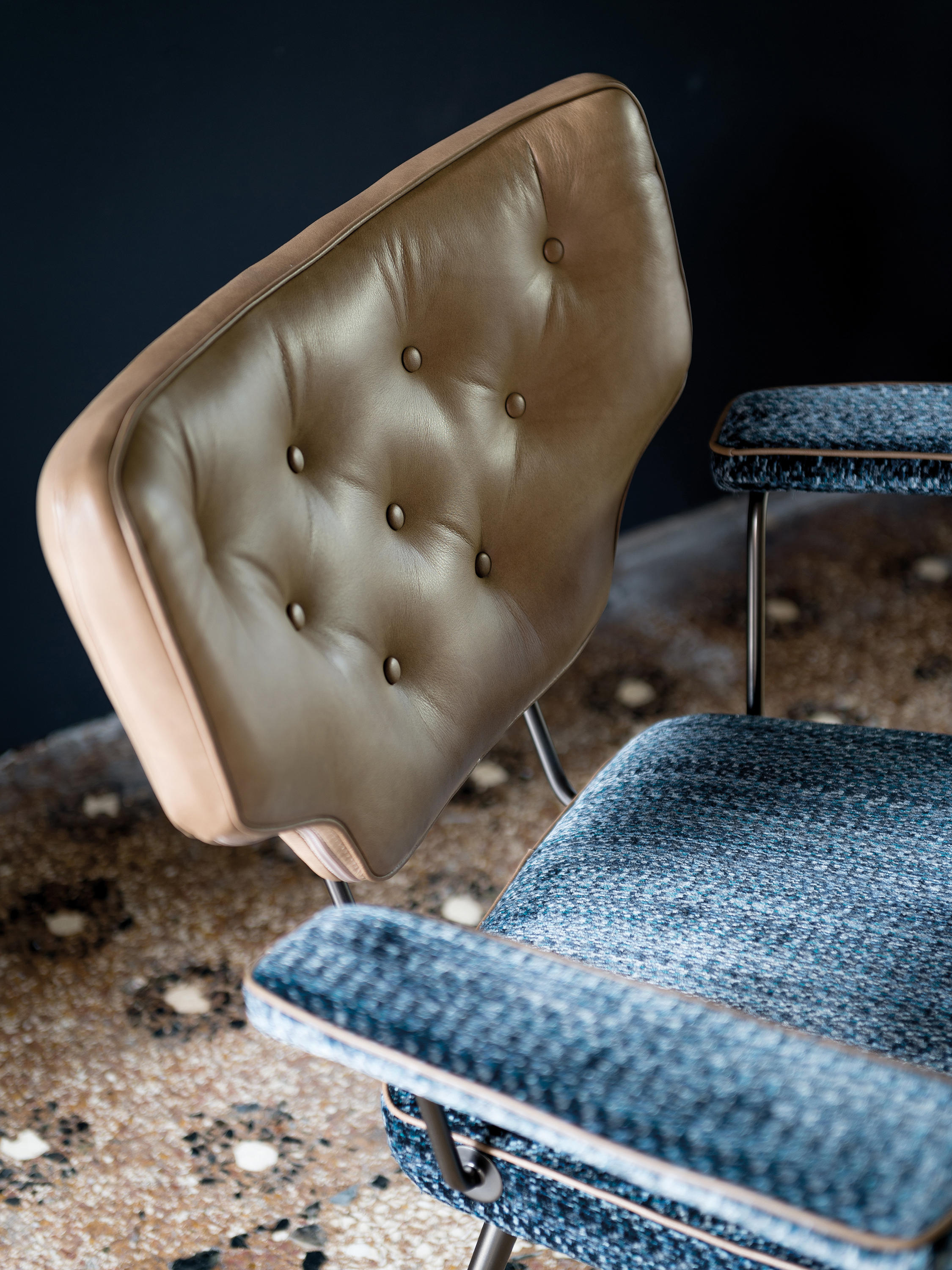 Twiggy是一款多功能的扶手椅,带有一种时尚的复古风格,灵感来源于一种个人时尚风格。在皮革或织物上的棉背,可以与座椅和手臂的装饰相匹配。滚边是一种高级的高级定制的细节,在周边,和背部的材料是相同的材料。这种腿有云母棕或钛金属。
