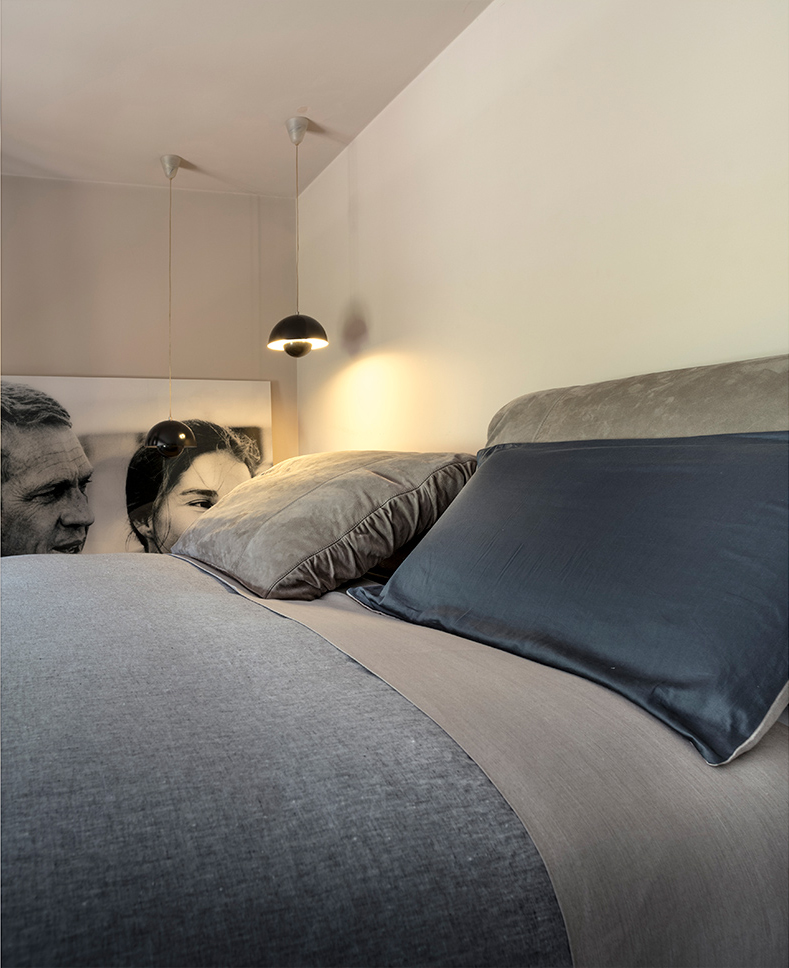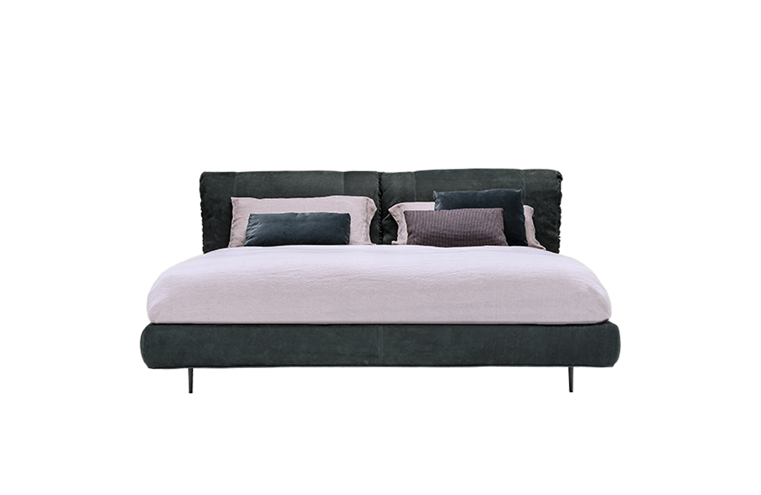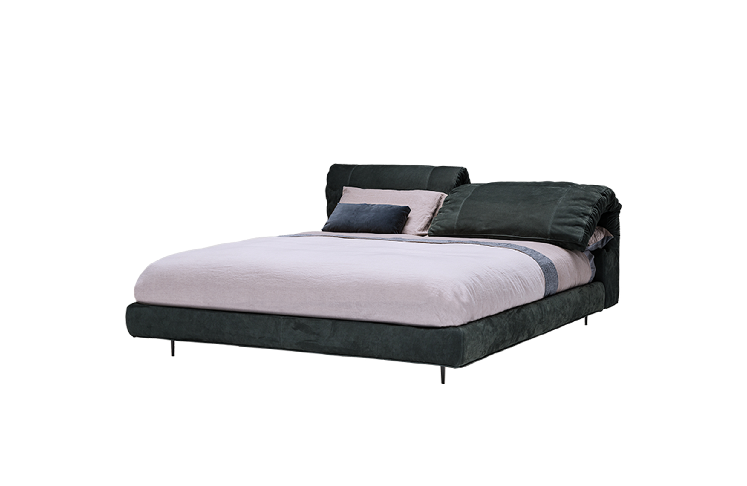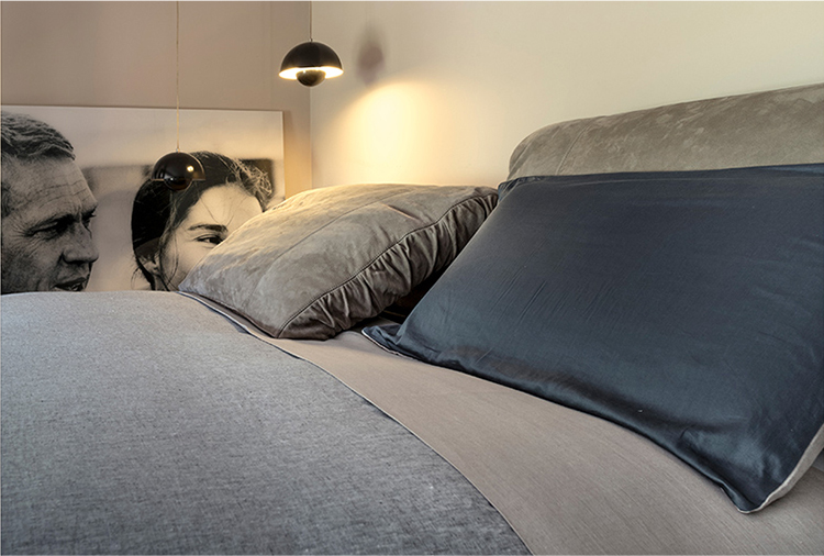 枕头可以藏在床头板后面,床头板有一种柔软的可以折叠的装饰性特征。这崭新的细节,为一个柔软别致的床。