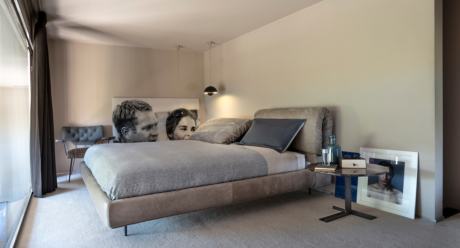 疯狂的梦幻床, 灵感来自于同一系列的沙发,它提供一个可调节的床头板,允许舒适和优雅的多功能性。