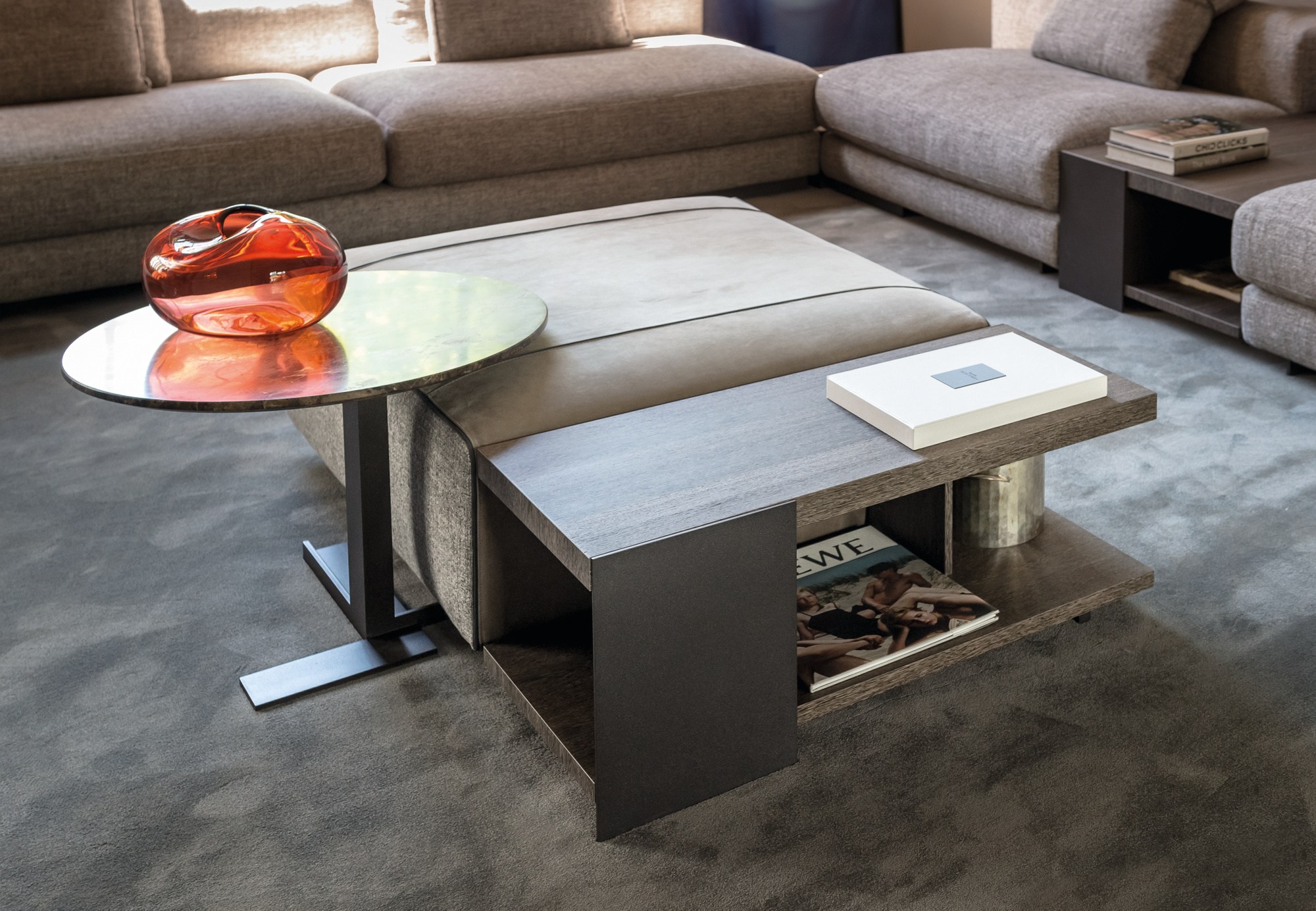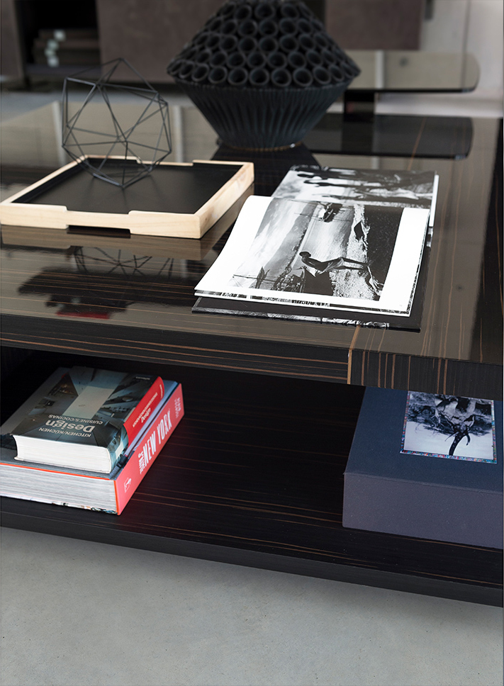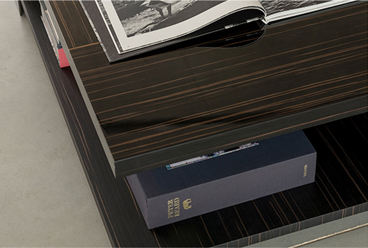 Noth桌子可以为客厅提供功能性和现代风格。金属结构是由云母棕色、氧基灰色或黑色的镍制成,用于固定由莫卡橡木、柚檀木或光泽乌木制成的桌面。开放的空间和几何设计,使Noth桌子可随意的安放在客厅或和沙发进行搭配。