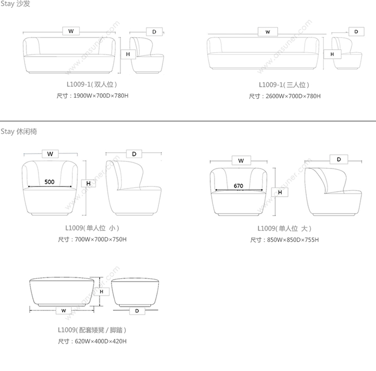 Stay 沙发 系列尺寸/示意图