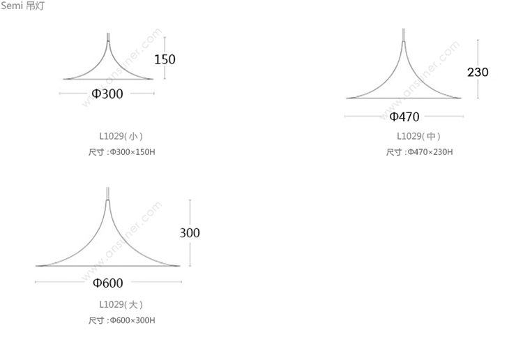 Semi 吊灯 系列尺寸/示意图