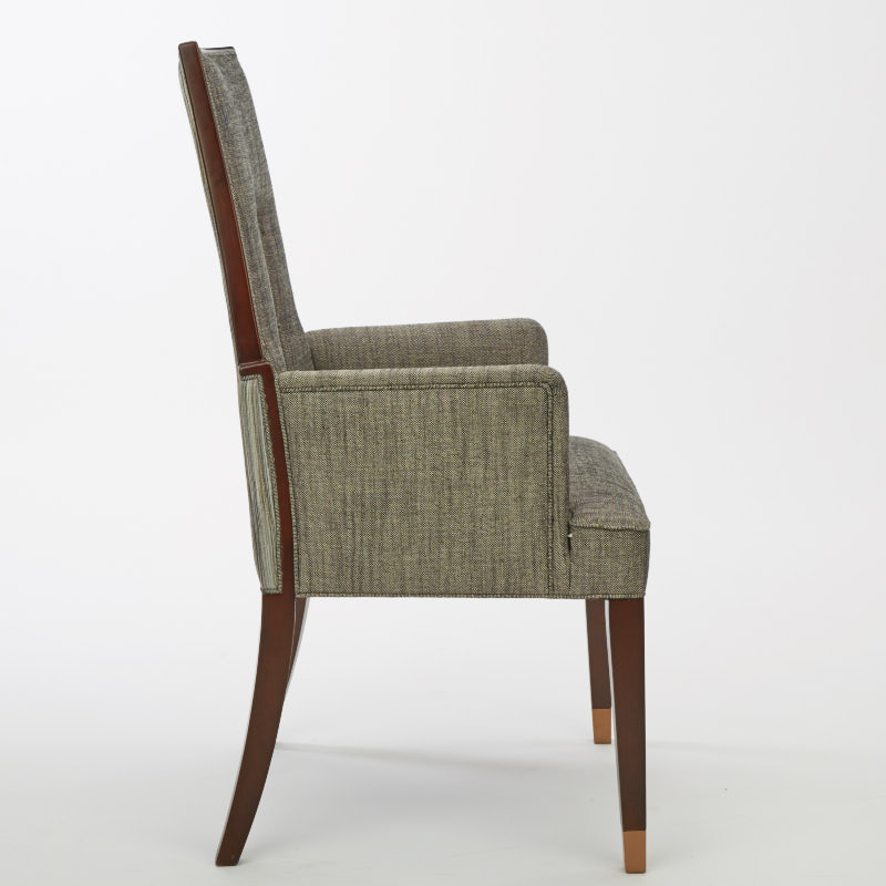 布包饰工艺,由经验丰富的技师手工独立完成,确保美观、耐用又符合人体工程学;铜脚,赋予中式韵味的同时以防磨损。线型具有浓郁的Art deco风格,现代简洁又充满艺术调性,背部镂空部位方便搬动。