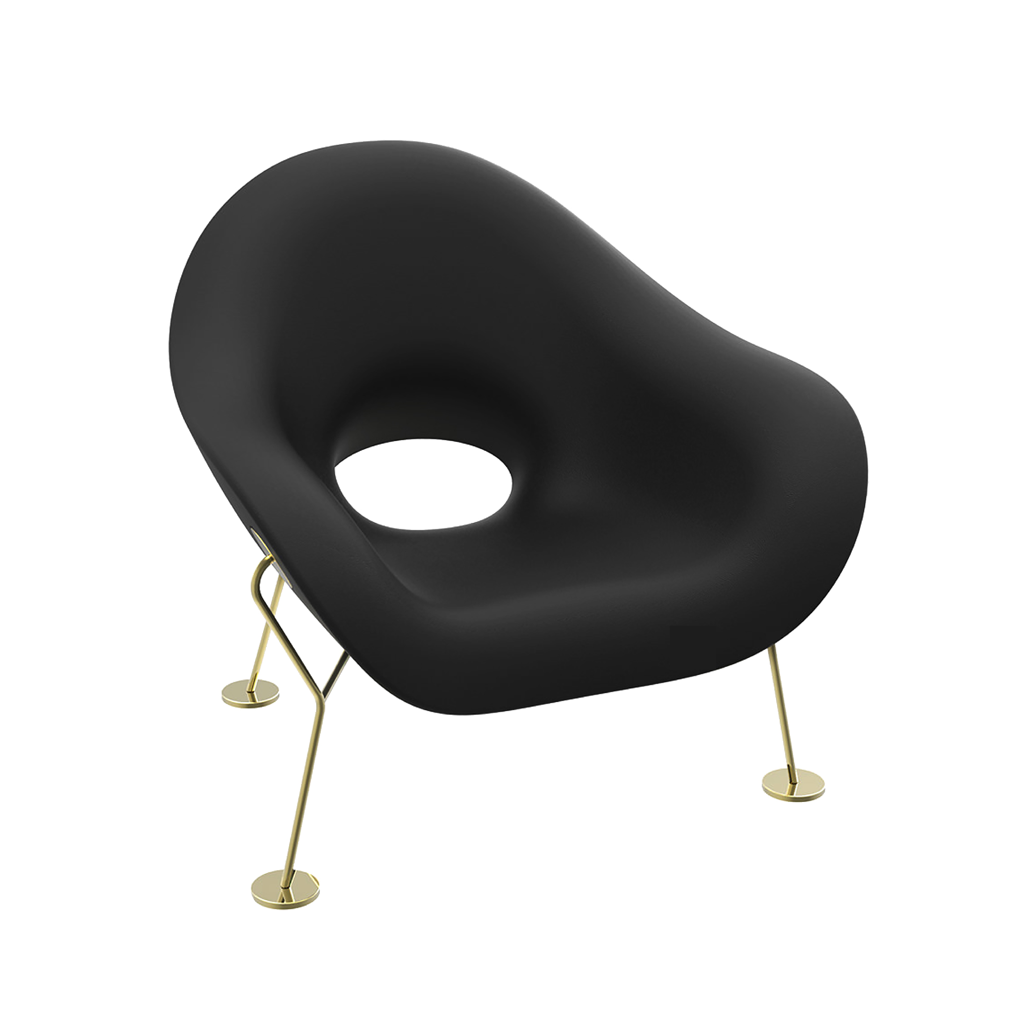 由Andrea Branzi签名的Pupa扶手椅同时具有敏捷和性感。 它倾斜在轻质金属框架上,使体积漂浮在空间中。外型为铬框,内饰为金框。