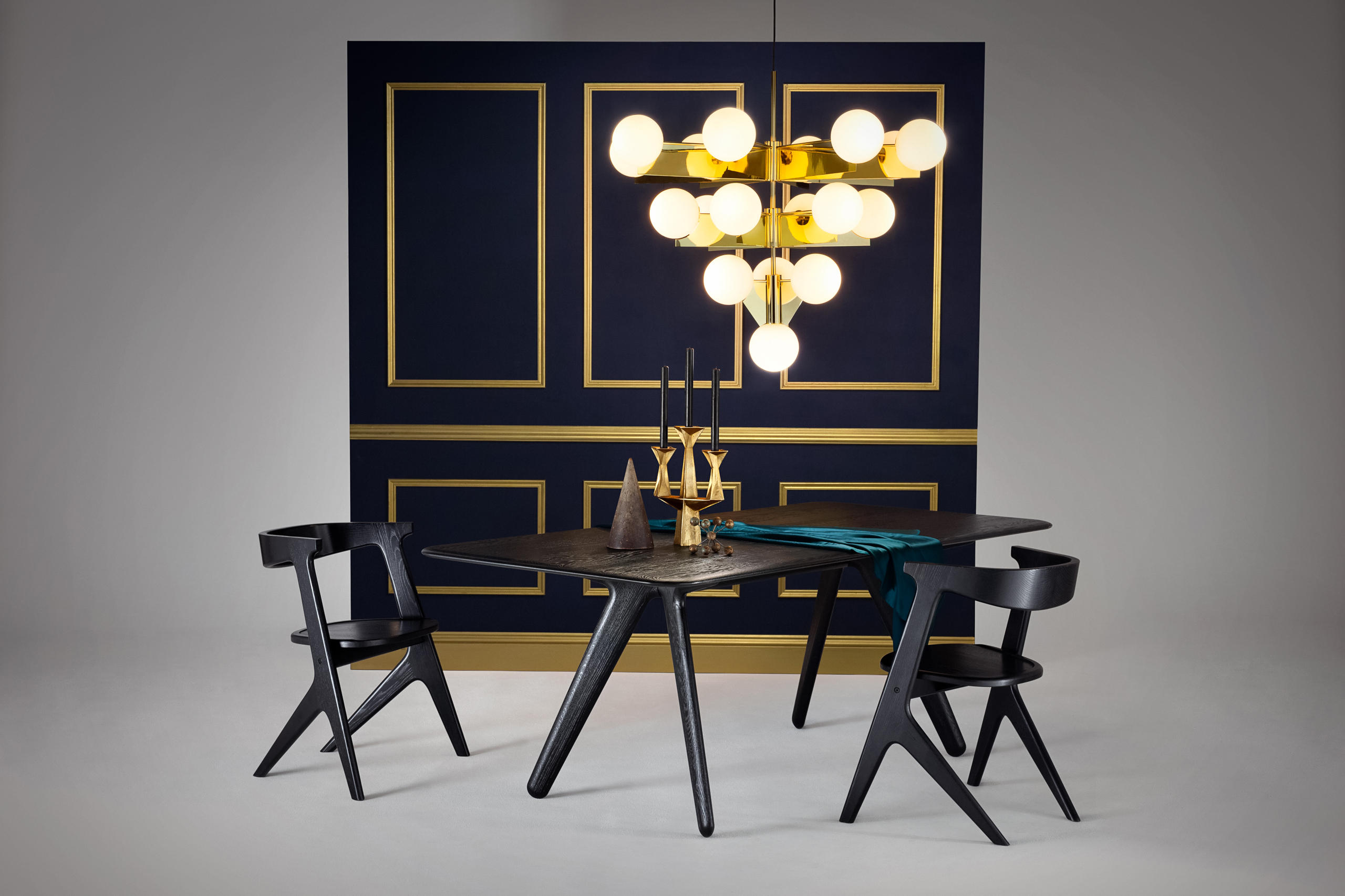 板形餐桌可使用自然漆或黑色漆完成。保留橡木的自然美,板坯收集是一系列以诱人的简洁的角度形式建造坚固的作品。表面被刷得很深,露出了颗粒。用黑色或天然漆完成。板坯收集包括一个酒吧凳子,椅子和桌子。