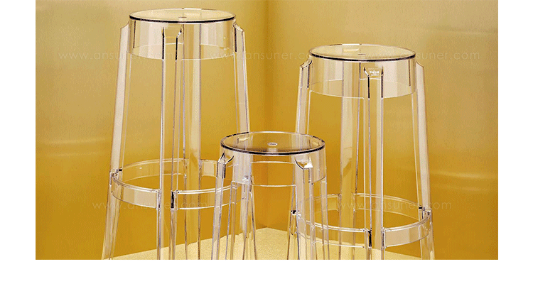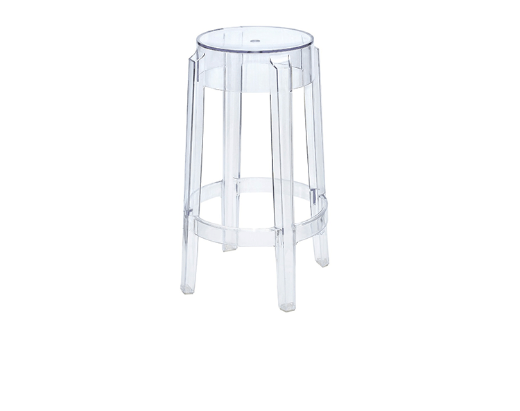 "Charles Ghost Stool(查尔斯鬼凳),由鼎鼎大名Philippe starck(菲利浦·史塔克)设计;进口高透明度工程塑料PC一体成型,简洁新潮,高净度透明材质很好的表现出产品的时尚和百搭,可以毫不夸张的说,几乎配任何装修风格他都很灵,而且显品味,空间感也很好,如果你的吧台空间不大的话,放这款吧椅视觉很通透,不占地方。"