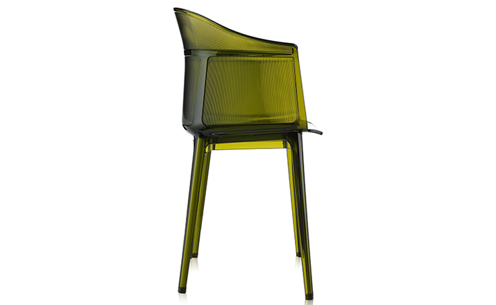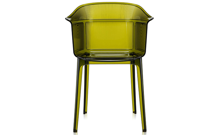 Papyrus Chair(纸莎草椅)是由Ronan & Erwan Bouroullec法国兄弟设计组合于今年为Kartell公司设计,并且在本次的米兰家具展中进行了展出。该设计的灵感来自于一把结构鲜明的古老座椅Linear,座椅本身非常舒适且重量很轻。其共有透明、黄、绿、紫、烟灰、棕、蓝和红八种颜色。这把椅子结合半透明的脚架,脚架“打磨”纤细的卵石状颗粒,并延伸至整个靠背的外轮廓,线条柔软和舒适。和整个结构都是透光的。因惊喜的做工和颜色的运用,使其非常吸引人。