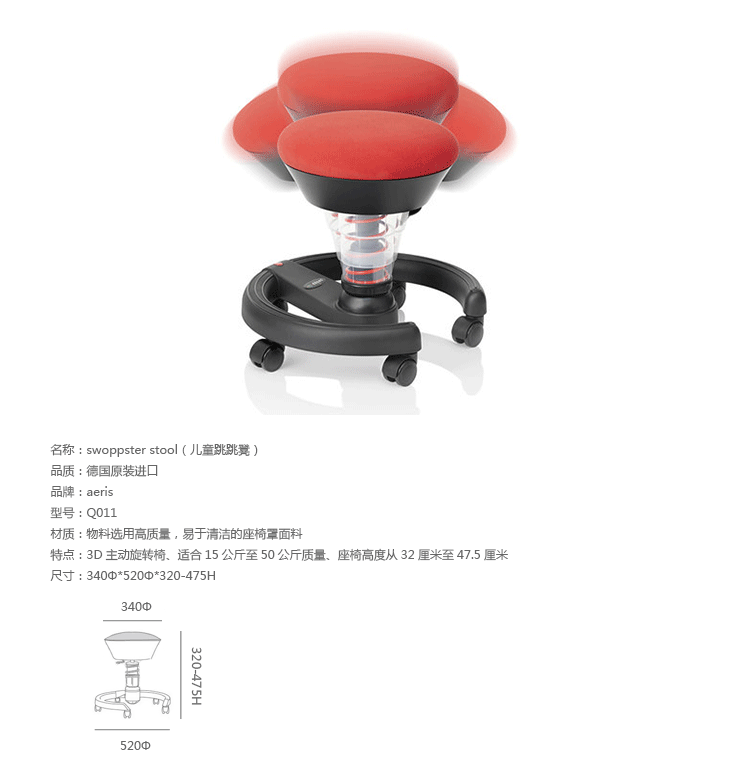 Swoppster Stool(儿童跳跳凳)是设计师Henner Jahns别具心裁的设计。如今孩子们仍然花大量时间在家庭作业上,在电脑和电视机前的长时间坐着,缺乏运动。Swoppster 是专为在幼儿园的儿童和小学生设计的,他们非常需要运动充足的运动。通过其3D技术,可以积极防止不良姿势,背部问题。运动大脑发育成熟,即为一个孩子的智力发展也是重要的。Swoppster 在这里帮助通过更多的运动,改善血液循环,从而增加对身体的所有部位的氧气供应。Swoppster使得孩子们更加专心和专注,同时它也是充满乐趣的。