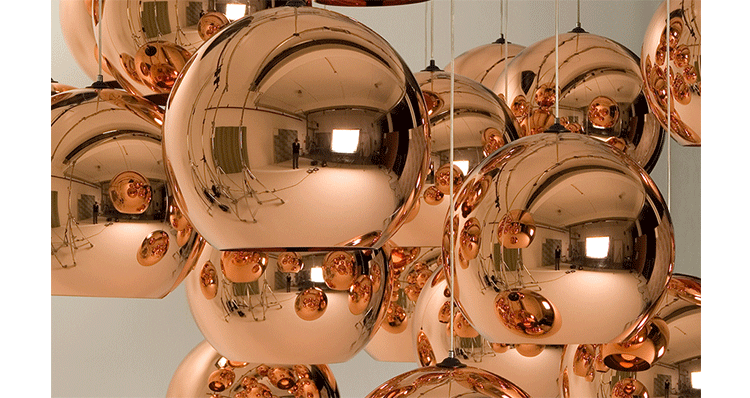 A pendant light made using copper, a material more commonly associated with solar cells and microwave radiation. The Copper Shade is created by exploding a thin layer of pure metal onto the internal surface of a polycarbonate globe. The result is a highly reflective surface with a warm metallic glow.