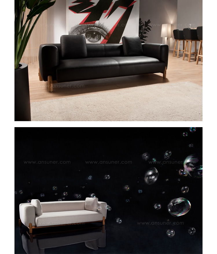 块辅以简单的构造形态的独特结构的腿,这是实木做的。 这种关系让沙发上强烈的个性,同时使其保持谨慎的家具。