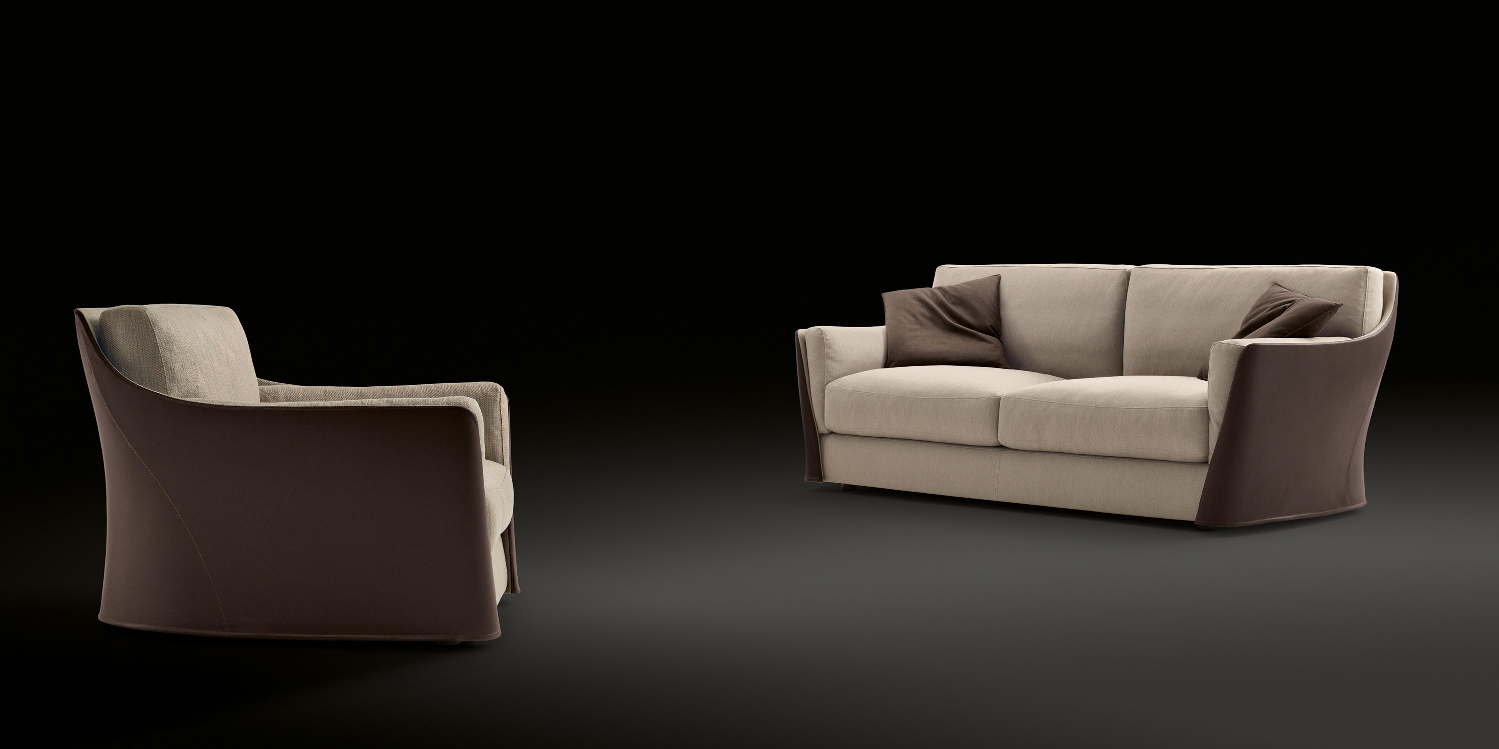 扶手椅和沙发的结构型钢的靠背,座位上的一个杨树胶合板和coldfoamed填充聚氨酯纤维覆盖。 靠背和坐垫上的鹅羽毛,最后在扩大聚氨酯的插入。 家具,完全可移动的织物或皮革,可以是一种颜色或两种颜色在皮革和内部外部织物或皮革。 一个在鹅的羽毛垫扶手椅和两个沙发的推荐。