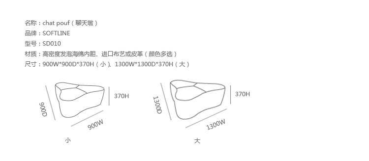 Chat Pouf(聊天墩)是日本著名的工业设计师Hiromichi Konno的作品,造型是立体的三角星形,线条优美流畅。这个坐垫凳适合于各种各样的环境中和不同的使用方式。颜色吸引人,自然,简约,简约。Chat Pouf质量很轻,便于移动和存储,采用高密度发泡海绵内胆、进口布艺或皮革(颜色多选)。