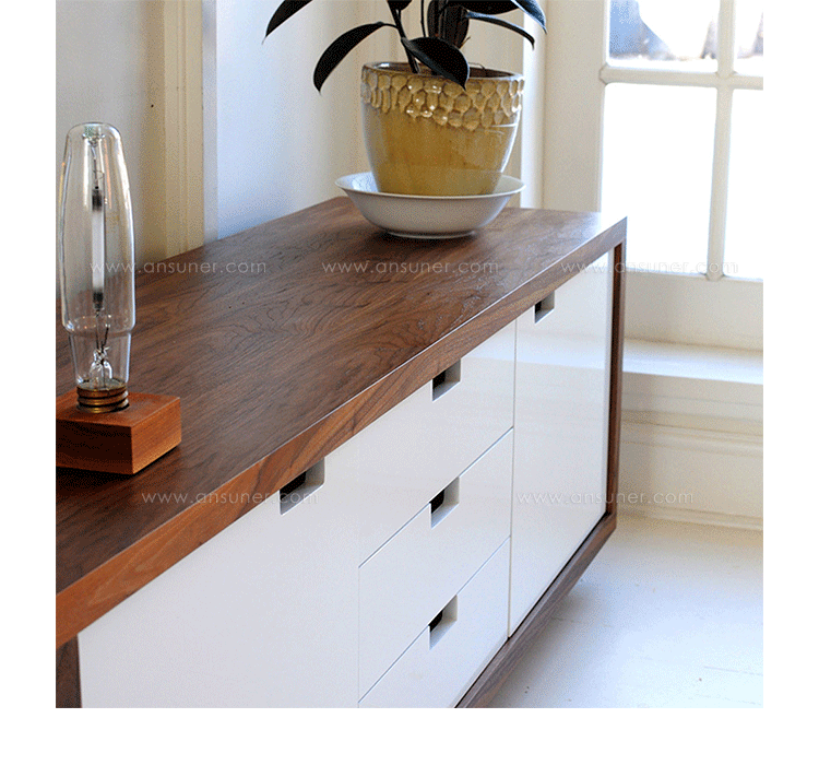 wilson media stand(威尔逊媒体柜)专为现代娱乐室所设计,制作混合温暖,核桃外观与白色多外套漆门。设有两个中央腔组件存储,后面板打开以便电缆管理。制作采用精选MDF板基材胡桃木或水曲柳木皮贴面、胡桃实木或水曲柳实木脚架、环保净味油漆喷涂,做工精湛。