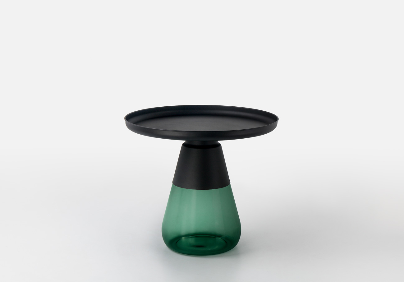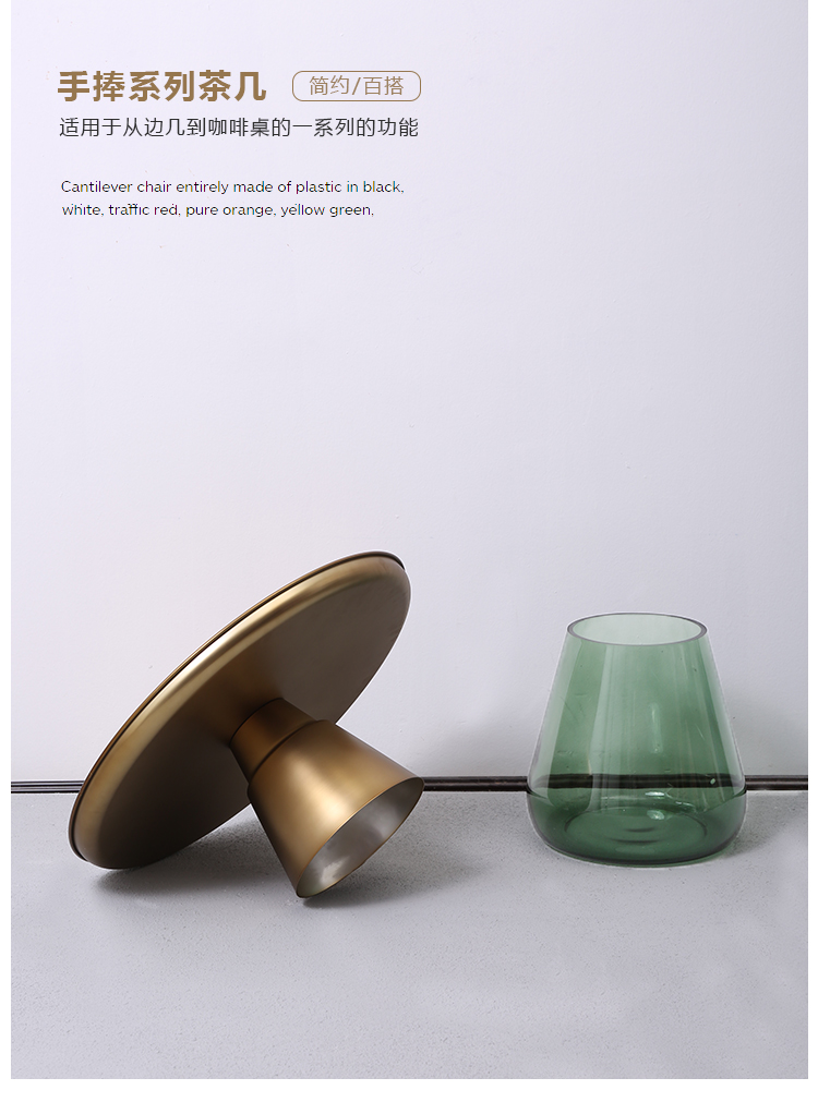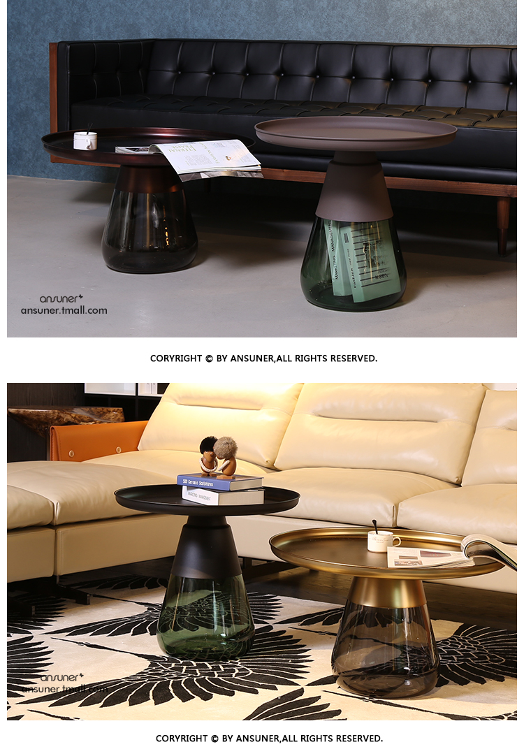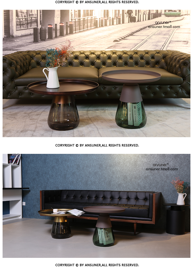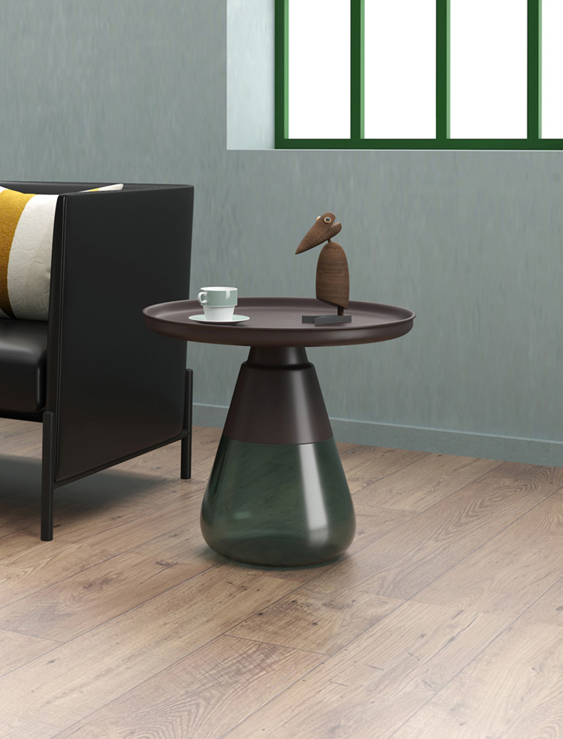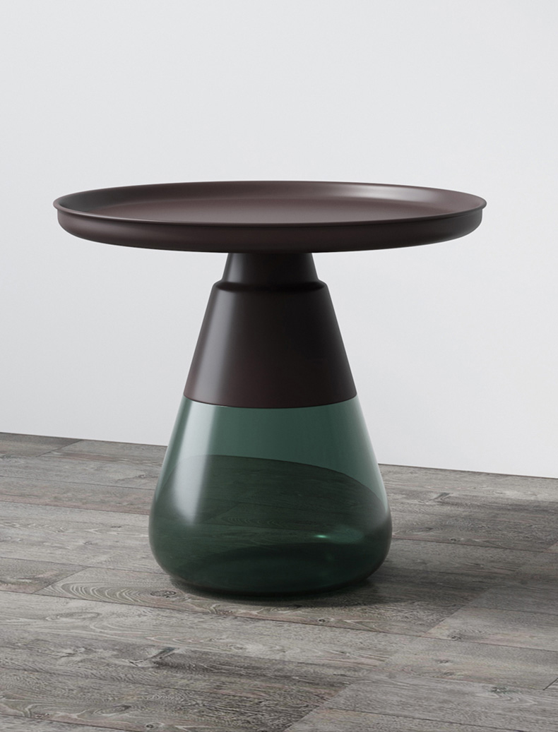 这款半透明带有色彩的玻璃和铝合金组成的手捧咖啡几,有着穿越历史长河的影子,竟像是宫廷画中拿出来的一般,底座的玻璃带给人温润如玉的视觉和触觉的通感。