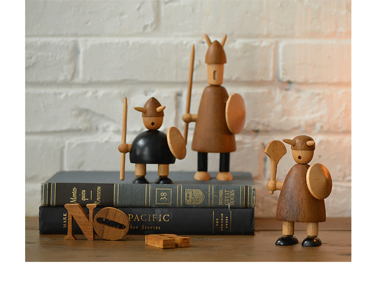 由于50年代的丹麦活跃着一股「斯堪地那维亚现代主义设计」风潮,延续低调简洁的风格并大量采用自然木材与传统工艺所迸出的美丽火花,设计大师Jacob Jensen也致力其中成为见证历史的大师之一。Jacob Jensen Wooden Viking(维京海盗)是经典的北欧形象,随着《加勒比海盗》系列电影的风靡,维京海盗在骁勇彪悍的传统形象里增加了俏皮、温暖、幽默的一面。这一组维京海盗形象为主题的北欧木雕设计,正是基于如此可爱的解读而做,摆在桌面上形成了饶有趣味的场景感,也是用来赠送的高档礼品。